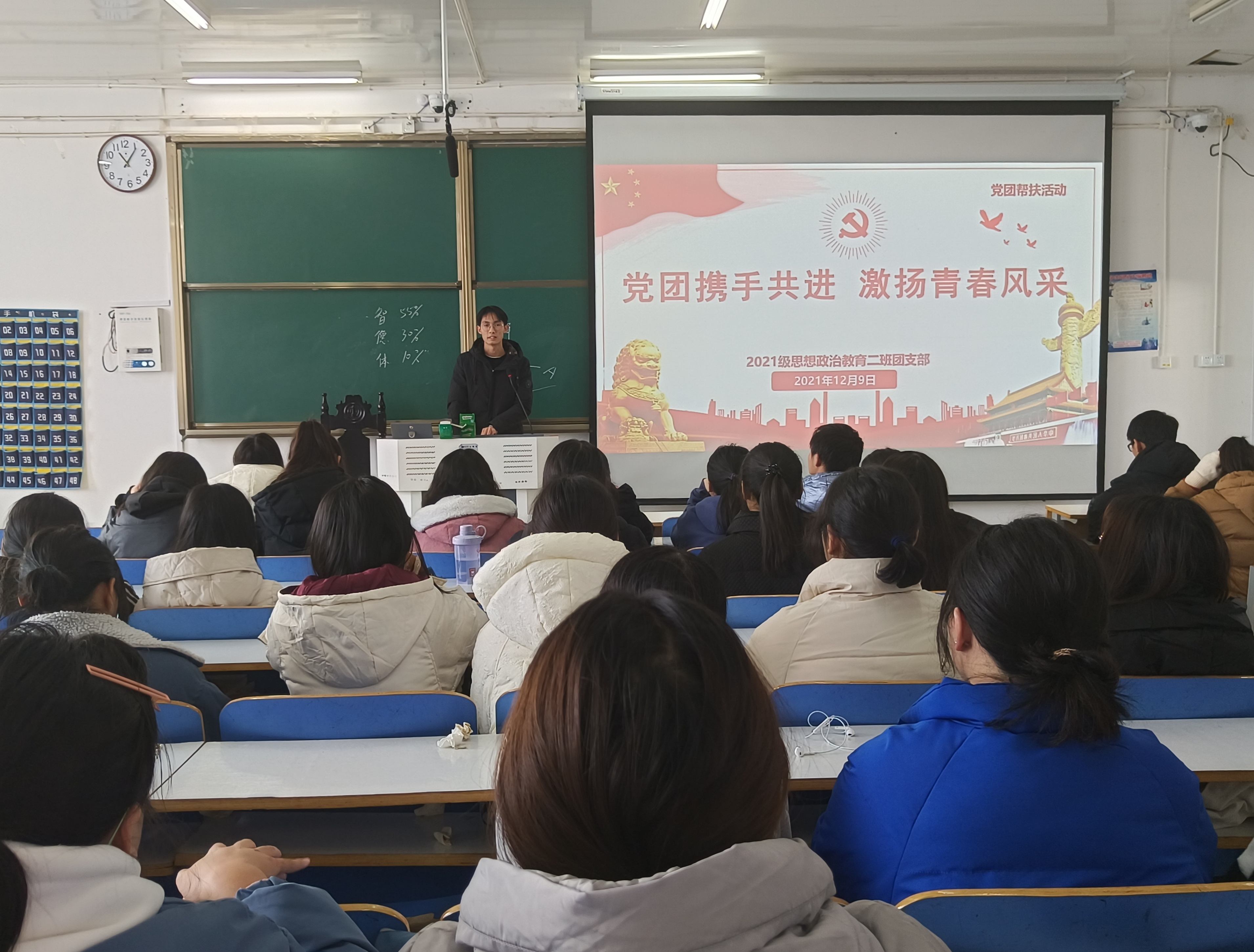 12月9日上午,德赢AC米兰官网2021级思想政治教育二班在社科楼516教室举办“党团携手共进,激扬青春风采”党团帮扶活动。王明亮、刘鹏及2021级思想政治教育二班全体团员参加此次活动。活动由团支书王婧欣主持。