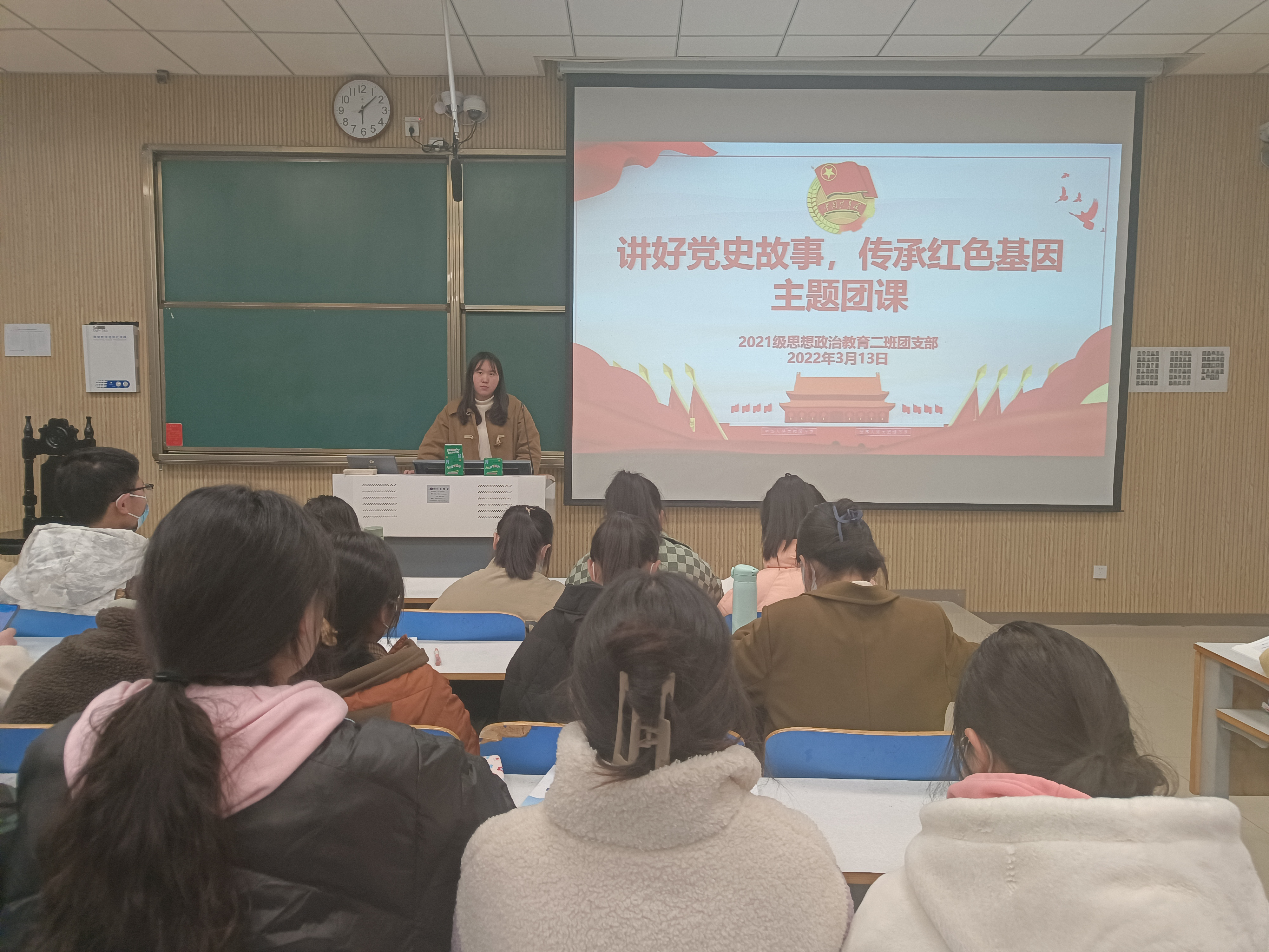 3月13日下午,德赢AC米兰官网2021级思想政治教育二班在社科楼515教室召开“讲好党史故事,传承红色基因”主题团课。2021级思想政治教育二班全体团员参加此次团课,团课由团支书王婧欣主持。