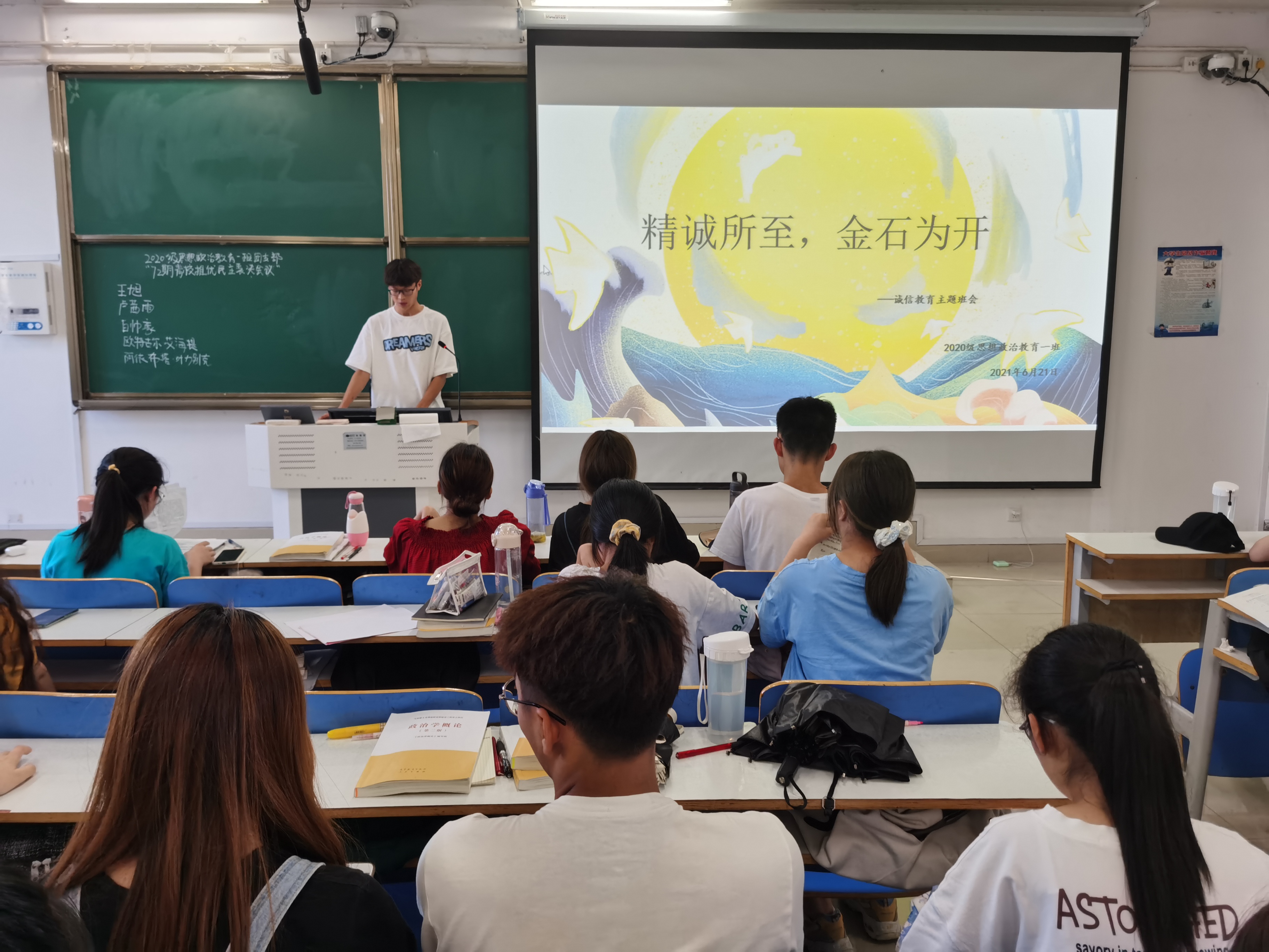 为响应学校学生资助管理中心号召,6月21日下午,德赢AC米兰官网2020级思想政治教育一班在社科楼514教室顺利开展“精诚所至,金石为开”诚信教育主题班会。班会由副班长白帅豪主持。