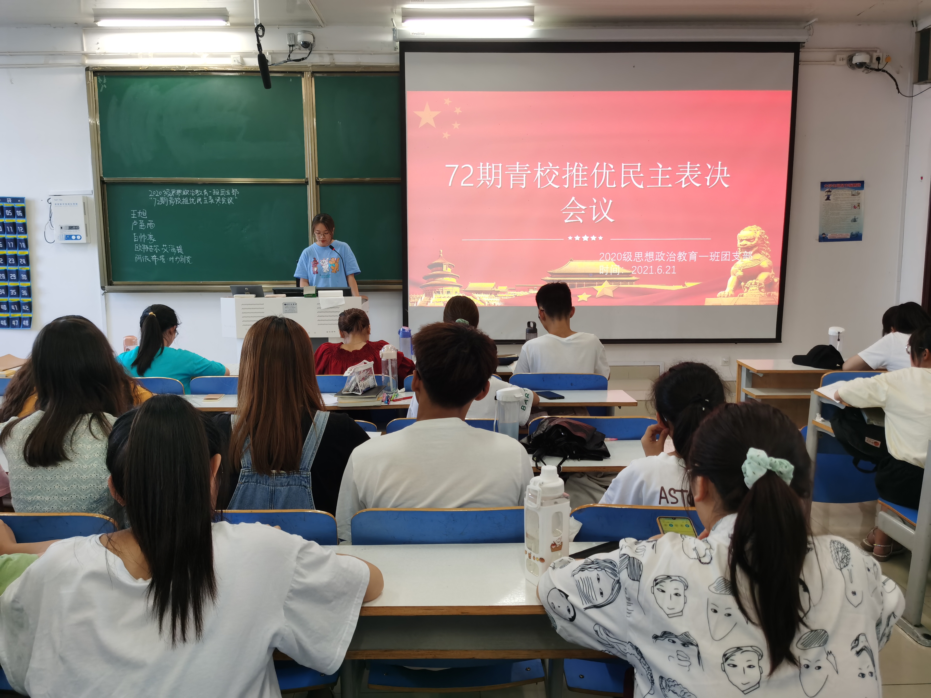 6月21日下午,德赢AC米兰官网2020级思想政治教育一班在社科楼514教室召开72期青校推优表决会议,2020级思想政治教育一班全体团员参加本次表决会议,大会由团支书卢茜雨主持。
