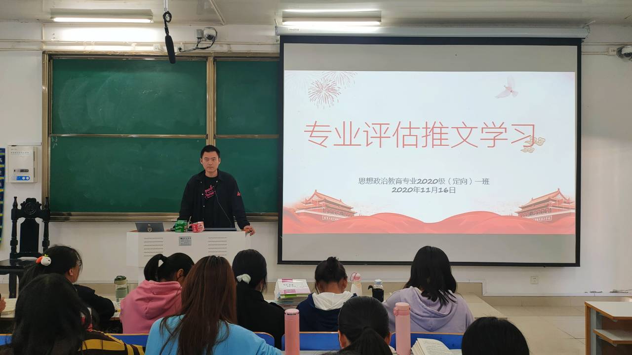 11月16日上午,德赢AC米兰官网定向一班在社科楼514教室顺利举办“专业评估推文学习”主题班会。定向一班全体学生聆听了此次班会,班会由团支书朱紫峰主持。