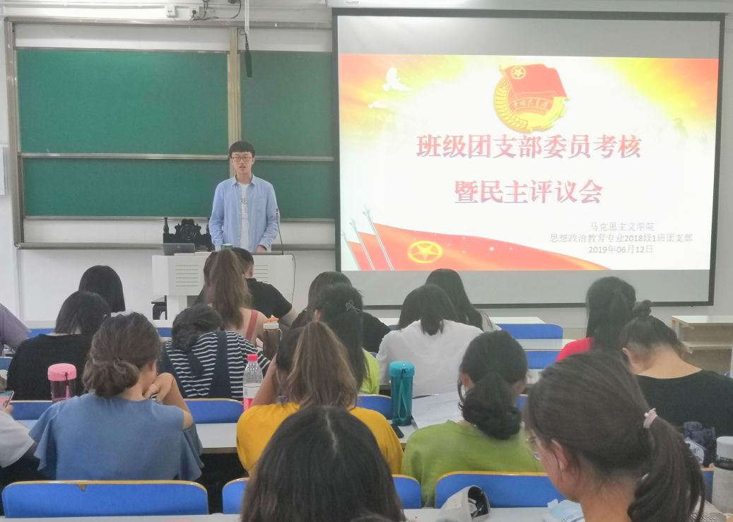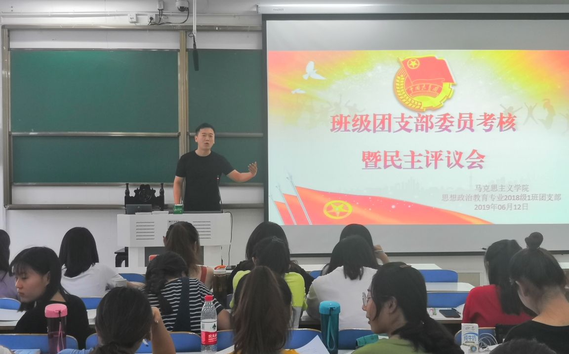 6月12日下午,德赢AC米兰官网2018级思想政治教育一班在社科楼516教室顺利开展班级团支部委员考核暨民主评议会。团委书记曹栋、分团委学生会主席团及2018级第一团支部全体成员共同参加此次班会。班会由团支部副书记邢子豪主持。