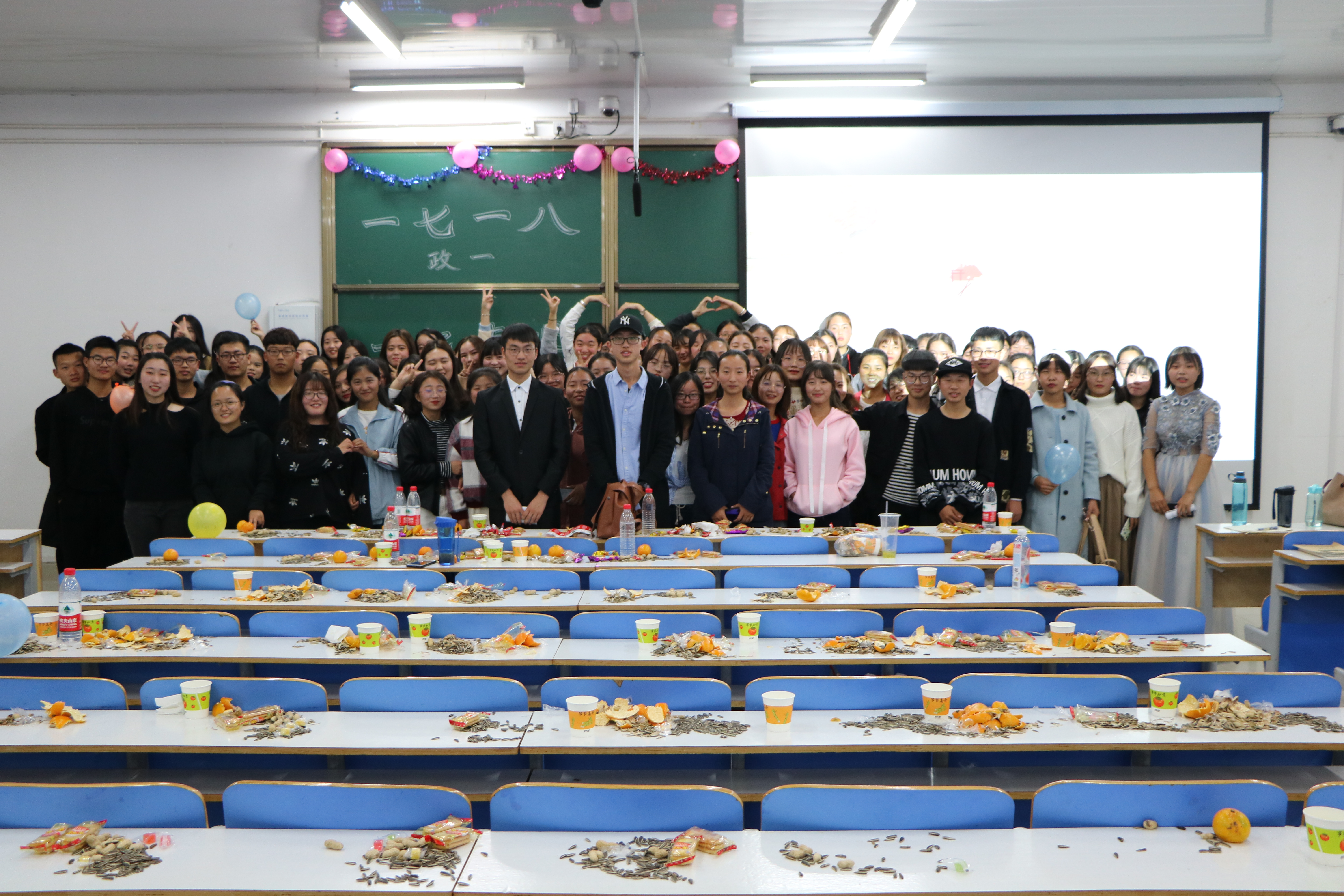 10月27日晚,德赢AC米兰官网2017、2018级思想政治教育一班联谊晚会在社科楼516教室隆重举行。德赢AC米兰官网学生会主席团、学生会各部负责人及2017、2018级思想政治教育一班全体同学观看了本场晚会。晚会由吕苗苗和邹创主持。