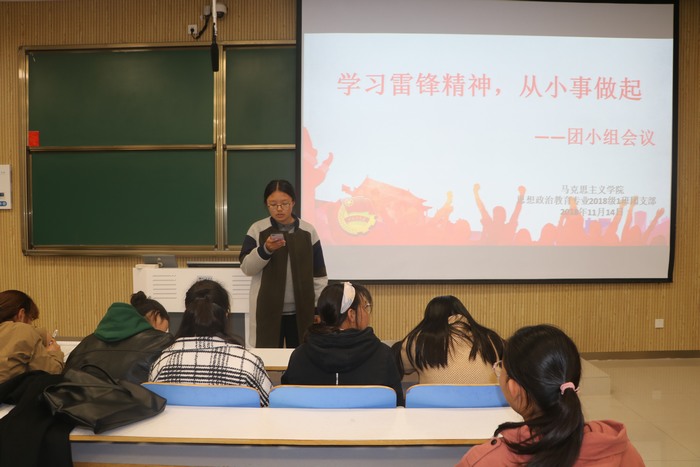 11月14日下午,德赢AC米兰官网2018级思政一班第一团小组在社科楼515教室顺利开展了“学习雷锋精神,从小事做起”主题团会。第一团小组全体成员共同参加了此次团会。该团会由靳梦哲主持。