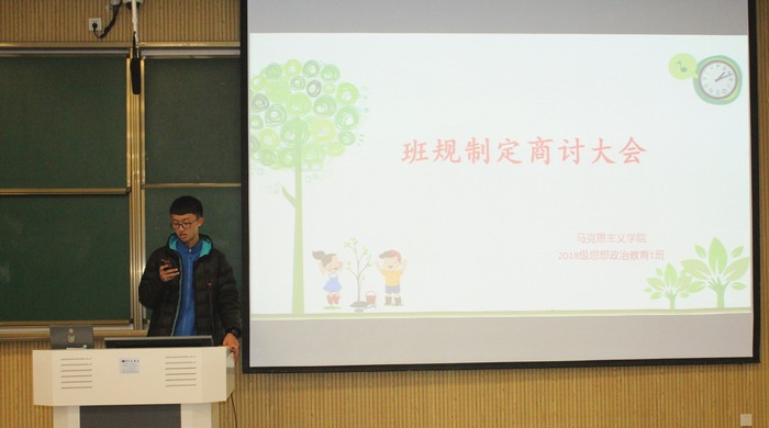 为增强同学们的纪律意识,提升班级事务管理水平,11月16日下午,德赢AC米兰官网2018级思想政治教育一班班委在教八楼顺利开展“班规制定商讨”会议。2018级思政一班全体团支部委员共同参加此次会议。会议由团支书靳雨露主持。
