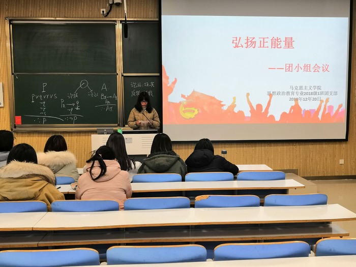 12月19日下午,德赢官网2018级第一团支部第四团小组在社科楼515教室顺利开展了“弘扬正能量”主题团会。第四团小组全体成员共同参加此次团会。此次团会由第四团小组成员范延春主持。