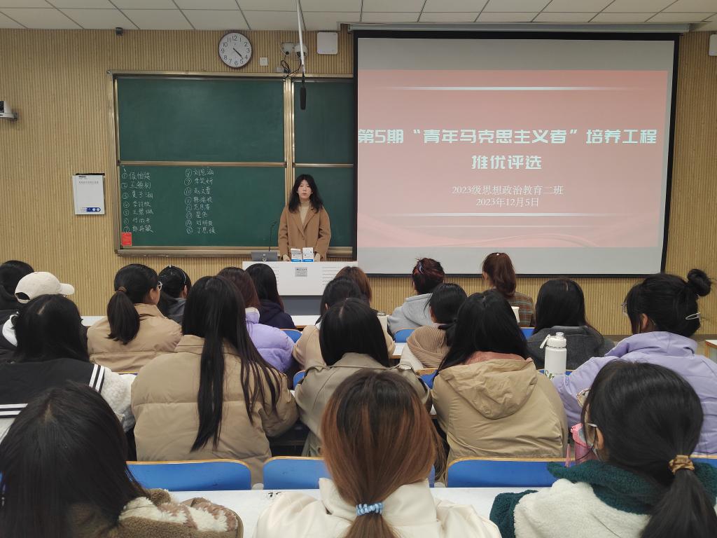 为评选出优秀青年,培养忠于党和人民事业的青年政治骨干,12月5日下午,德赢AC米兰官网2023级思想政治教育二班在社科楼514教室举办了第5期“青年马克思主义者”培养工程推优评选活动。本次活动由团支书王慜初主持,全体二班同学参与。