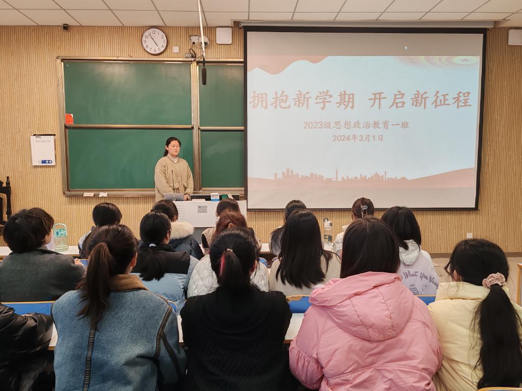 为更好地迎接新学期的到来,顺利开展各项工作,3月1日上午,德赢AC米兰官网2023级思想政治教育一班在社科楼515教室召开“拥抱新学期,开启新征程”主题班会。德赢官网2023级思想政治教育一班全体同学共同参与本次班会,班会由团支书张卓主持。