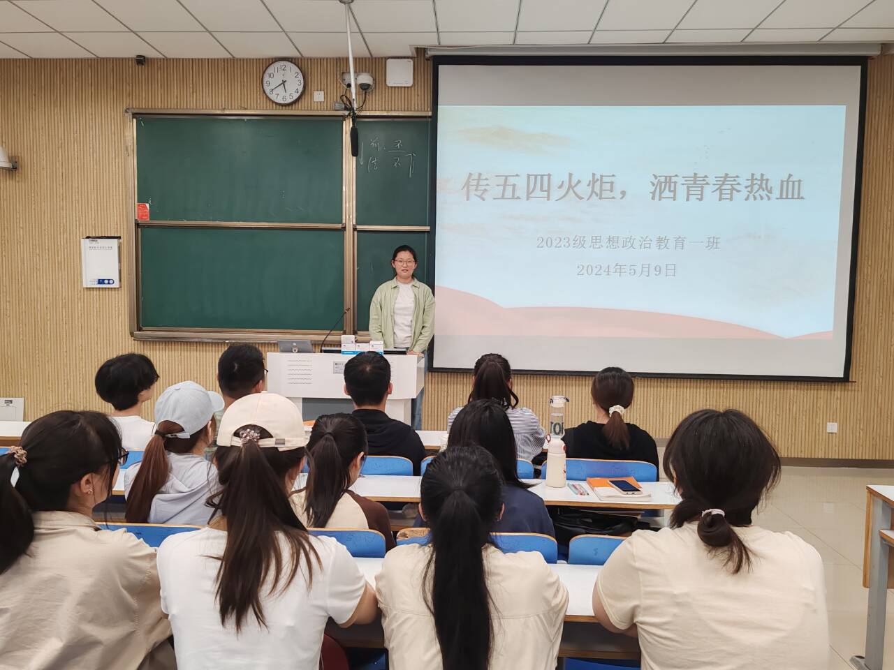 为进一步弘扬五四精神,激励和引导我班团员加强党团知识学习,5月9日下午,德赢AC米兰官网2023级思想政治教育一班在社科楼515教室召开“传五四火炬,洒青春热血”主题团课。德赢官网2023级思想政治教育一班全体同学共同参与本次团课,团课由团支书张卓主持。