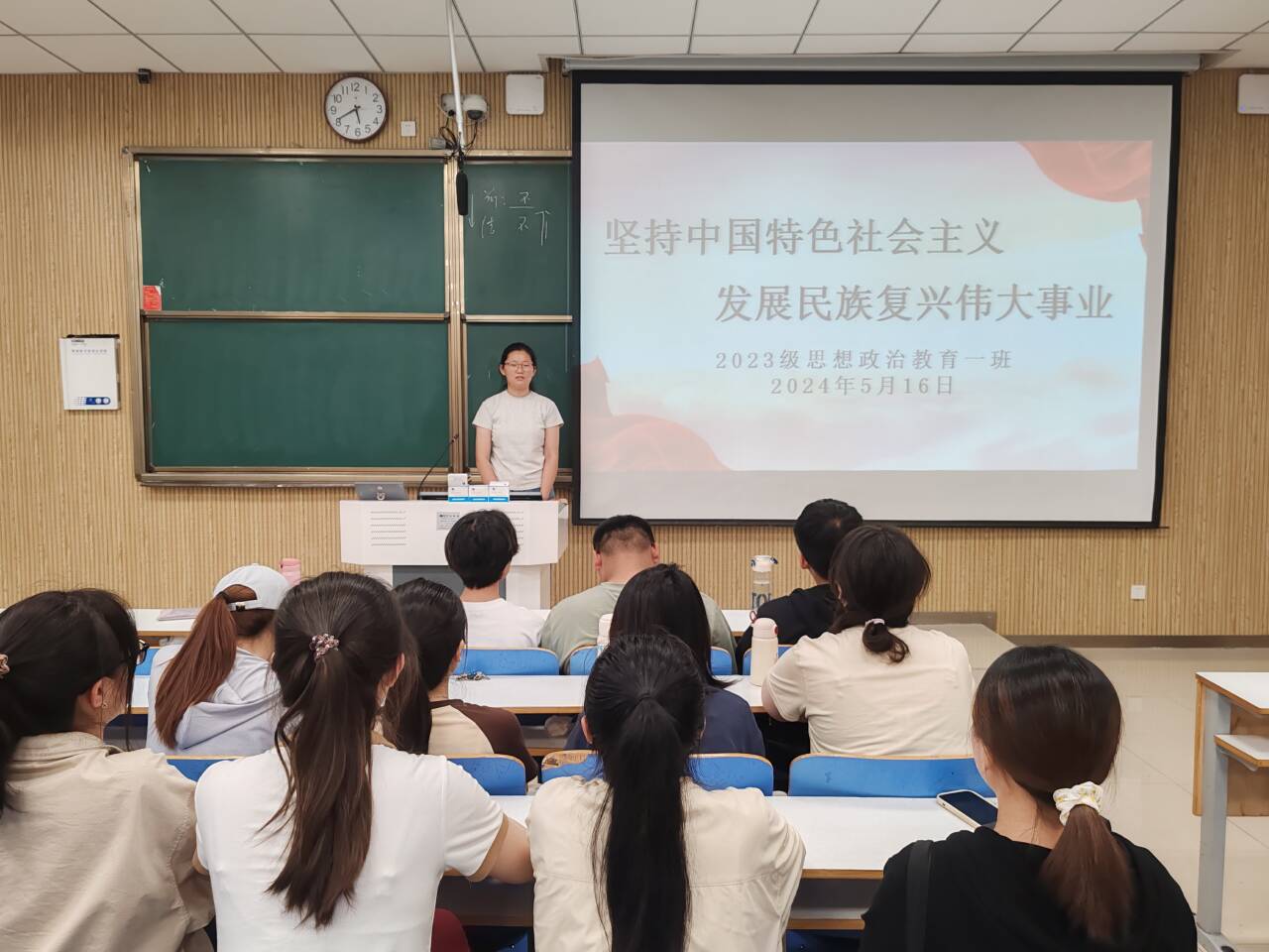 为响应习近平总书记对青年人的号召,进一步学习中国特色社会主义,5月16日下午,德赢AC米兰官网2023级思想政治教育一班在社科楼515教室召开“坚持中国特色社会主义,发展民族复兴伟大事业”主题团课。德赢官网2023级思想政治教育一班全体同学共同参与本次团课,团课由团支书张卓主持。