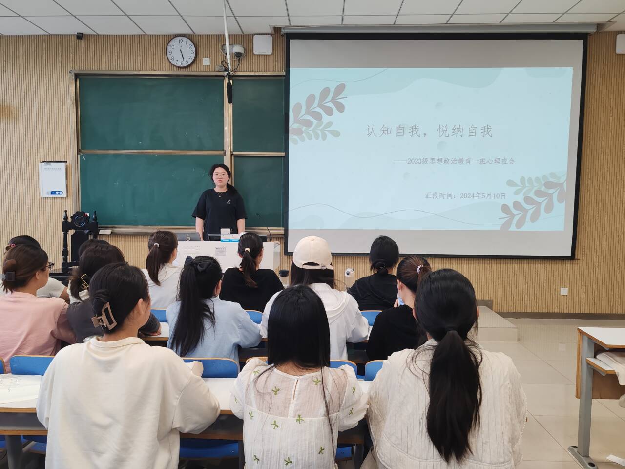 为进一步普及心理健康知识,提高我班学子的心理素质,促进学生身心健康发展,5月10日下午,德赢AC米兰官网2023级思想政治教育一班在社科楼515教室召开“认知自我,悦纳自我”心理班会。德赢官网2023级思想政治教育一班全体同学共同参与本次班会,班会由心理委员夏一萌主持。