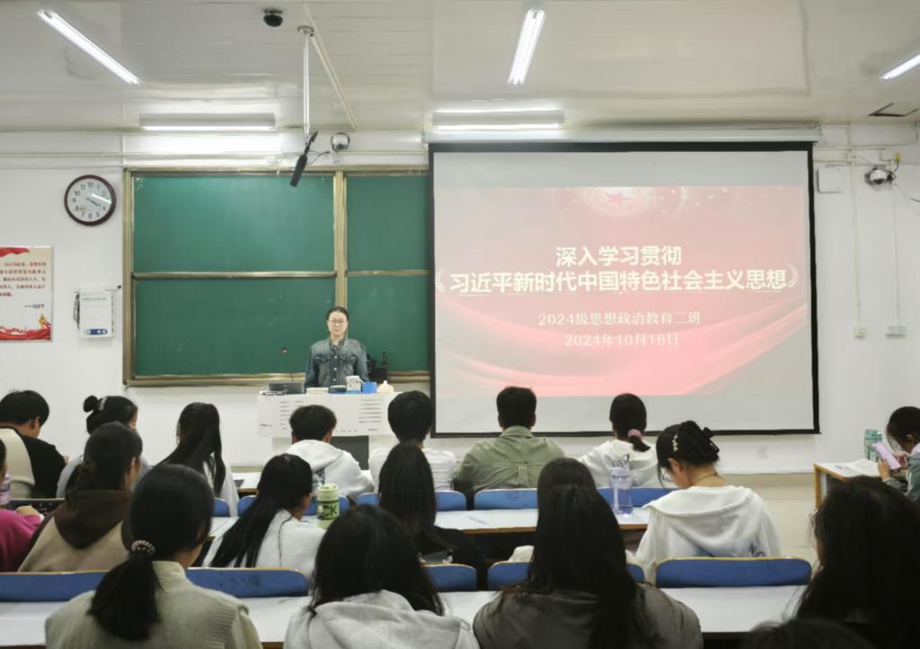 为深入学习贯彻习近平新时代中国特色社会主义思想,切实激发青年的使命感与责任感,10月18日下午,德赢AC米兰官网 2024 级思想政治教育二班 于社科楼514教室举办了 “深入学习新思想,青春奋进新时代” 主题团课活动。此次团课由团支书王志颖主持,二班全体同学共同参与。