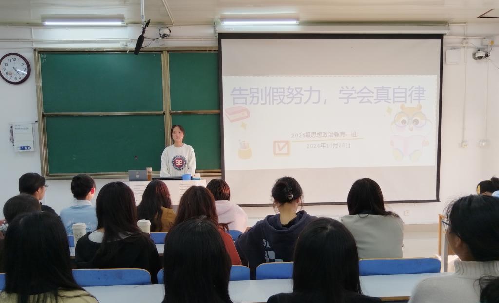 为帮助同学们提高学习效率,更好地适应大学学习节奏。10月28日上午,德赢AC米兰官网2024级思想政治教育一班在社科楼515教室召开“告别假努力,学会真自律”主题班会。班会由班长李冉主持,全体一班同学参加。
