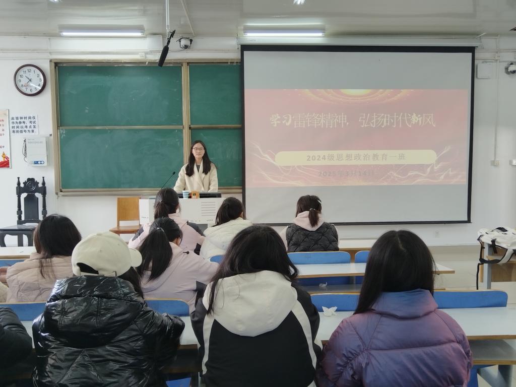 为让我班同学深入了解雷锋事迹,领会雷锋精神的内涵,提升同学们的社会责任感和奉献意识,3月14日下午,德赢AC米兰官网2024级思想政治教育一班在社科楼515教室开展“学习雷锋精神,弘扬时代新风”主题团课。本次团课由团支书李冉主持,一班全体同学参加。