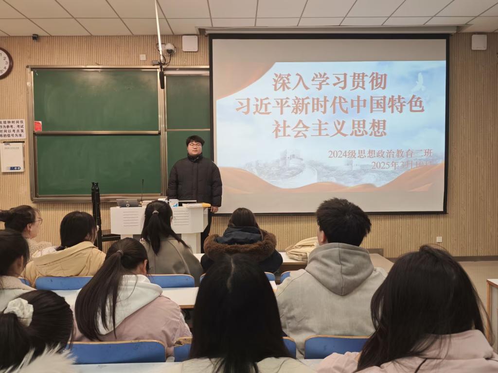 为引导青年学生深入学习习近平新时代中国特色社会主义思想,进一步坚定理想信念,提高政治觉悟,3月10日下午,德赢AC米兰官网2024级思想政治教育二班在社科楼515教室举办了“深入学习贯彻习近平新时代中国特色社会主义思想”主题班会。此次班会由团支书王志颖主持,二班全体同学共同参与。