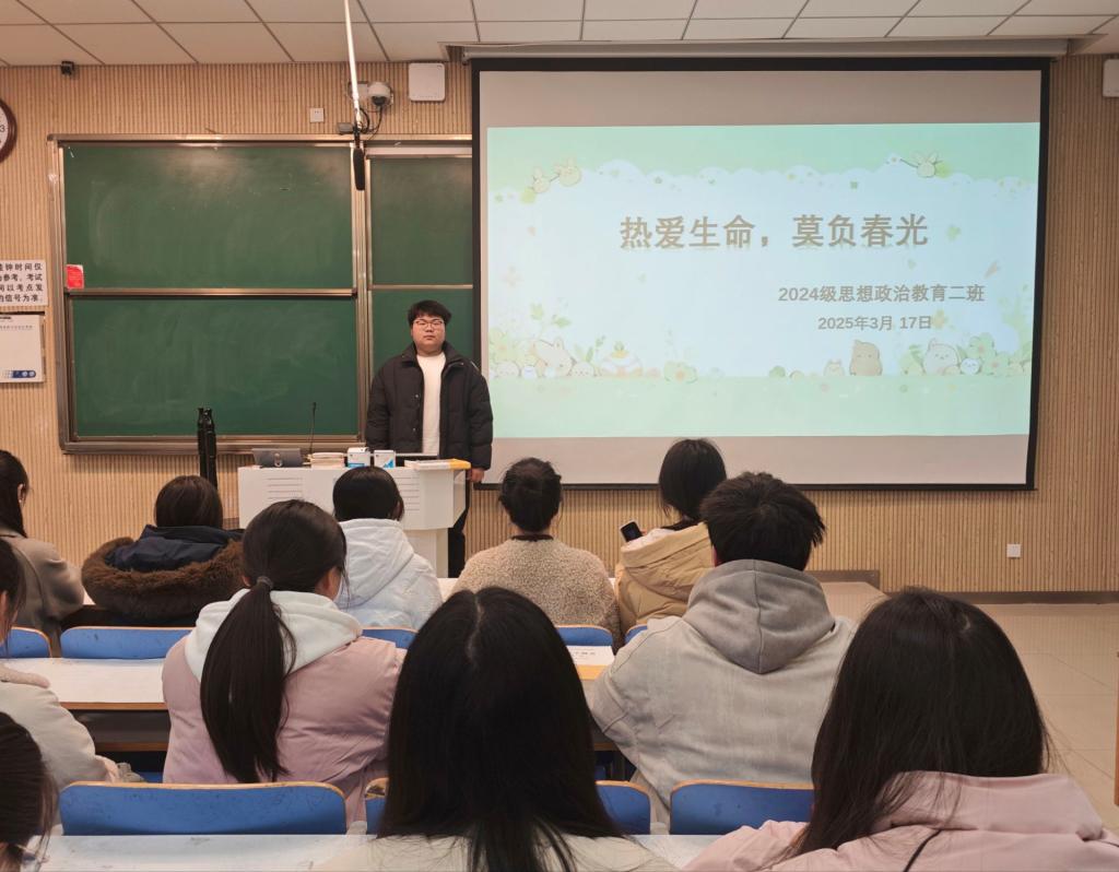 为引导同学们珍惜生命、热爱生活,以积极向上的心态面对学习与生活,3月17日下午,德赢AC米兰官网2024级思想政治教育二班在社科楼515教室举办了“热爱生命,莫负春光”主题班会。本次班会由团支书王志颖主持,二班全体同学共同参与。