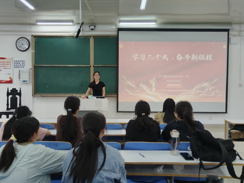为深入学习贯彻党的二十大精神,引导我班学生将思想和行动统一到大会精神上,为全面推进国家建设贡献力量,4月17日下午,德赢AC米兰官网2024级思想政治教育一班于社科楼515教室开展“学习二十大,奋斗新征程”主题团课。本次团课由团支书李冉主持,一班全体同学参加。