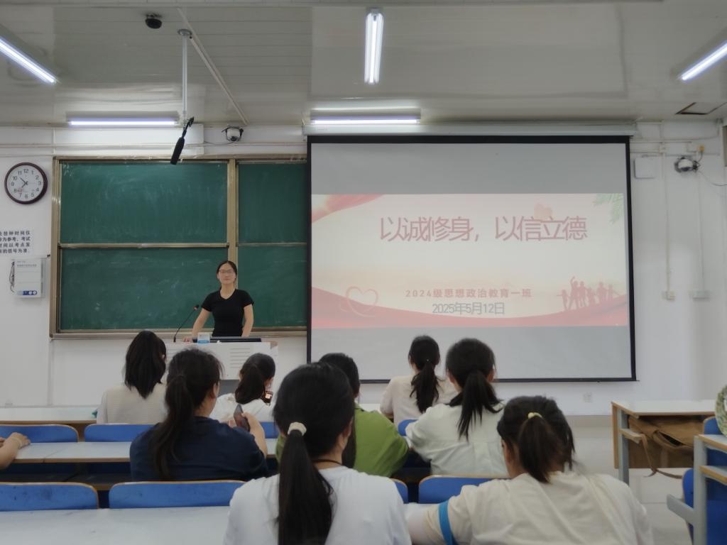 为培养我班学生的诚信意识,弘扬诚实守信的优良传统,5月12日上午,德赢AC米兰官网2024级思想政治教育一班于社科楼515教室开展“以诚修身,以信立德”主题活动。本次活动由班长李冉主持,一班全体同学参加。