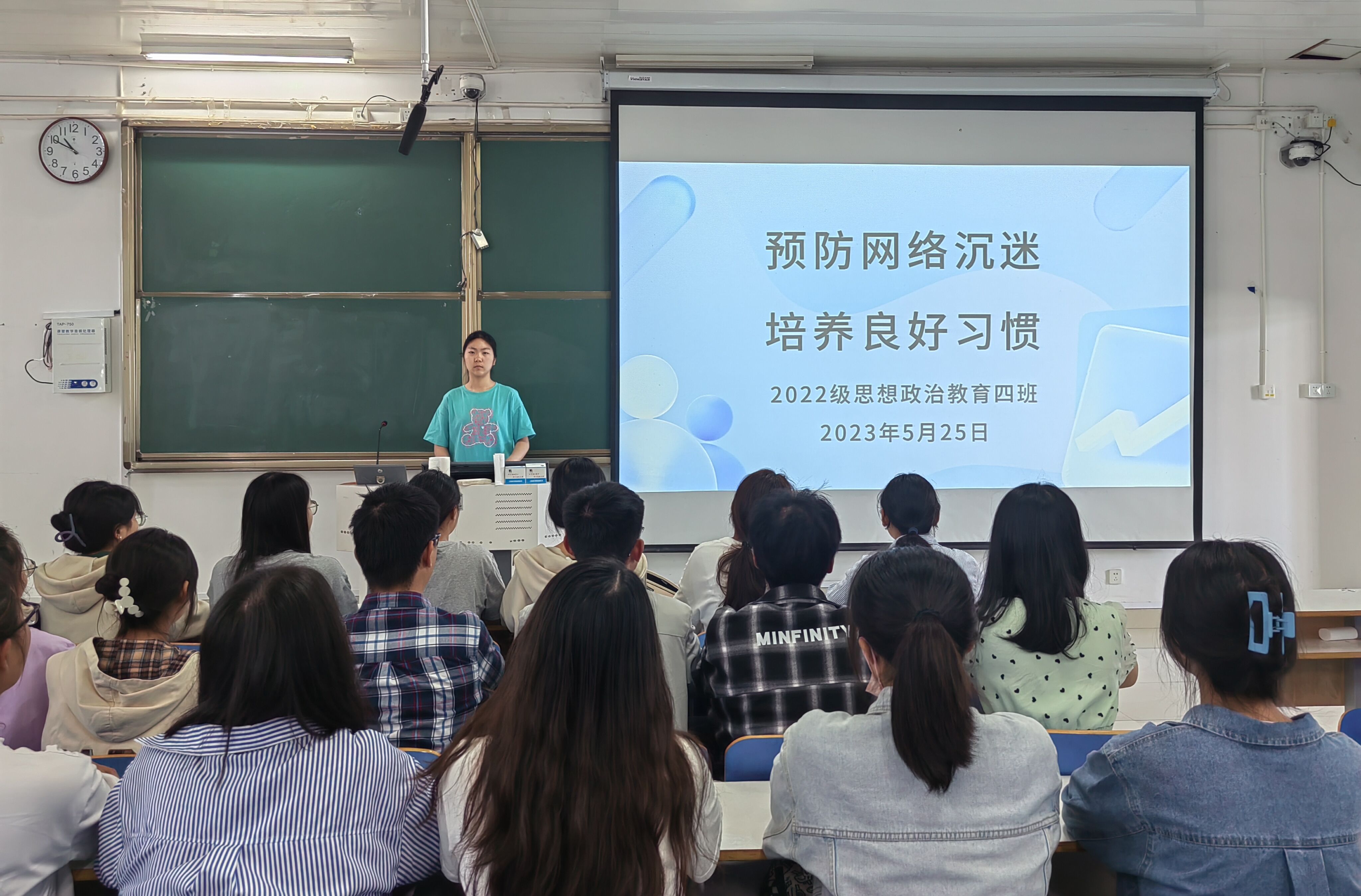 5月25日上午,德赢AC米兰官网2022级思想政治教育四班在社科楼514教室召开“预防网络沉迷,培养良好习惯”主题班会,德赢官网2022级思想政治教育四班全体同学参与本次班会。班长牛志杰主持班会。