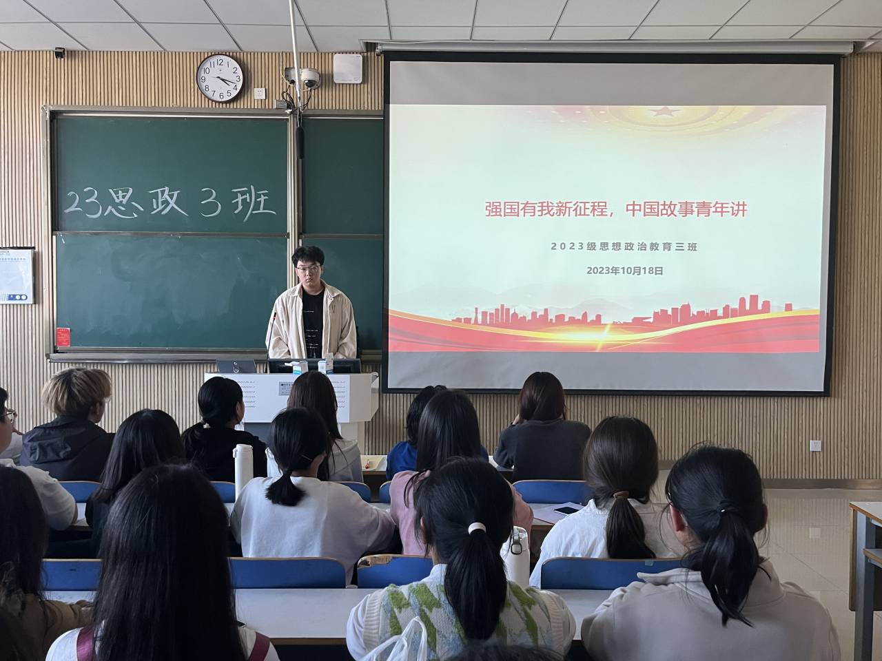 10月18日上午,德赢AC米兰官网2023级思想政治教育三班在社科楼514教室召开“强国有我新征程,中国故事青年讲”主题团课。德赢官网2023级思想政治教育三班全体成员共同参加此次团课,团课由团支书郝瀚主持。