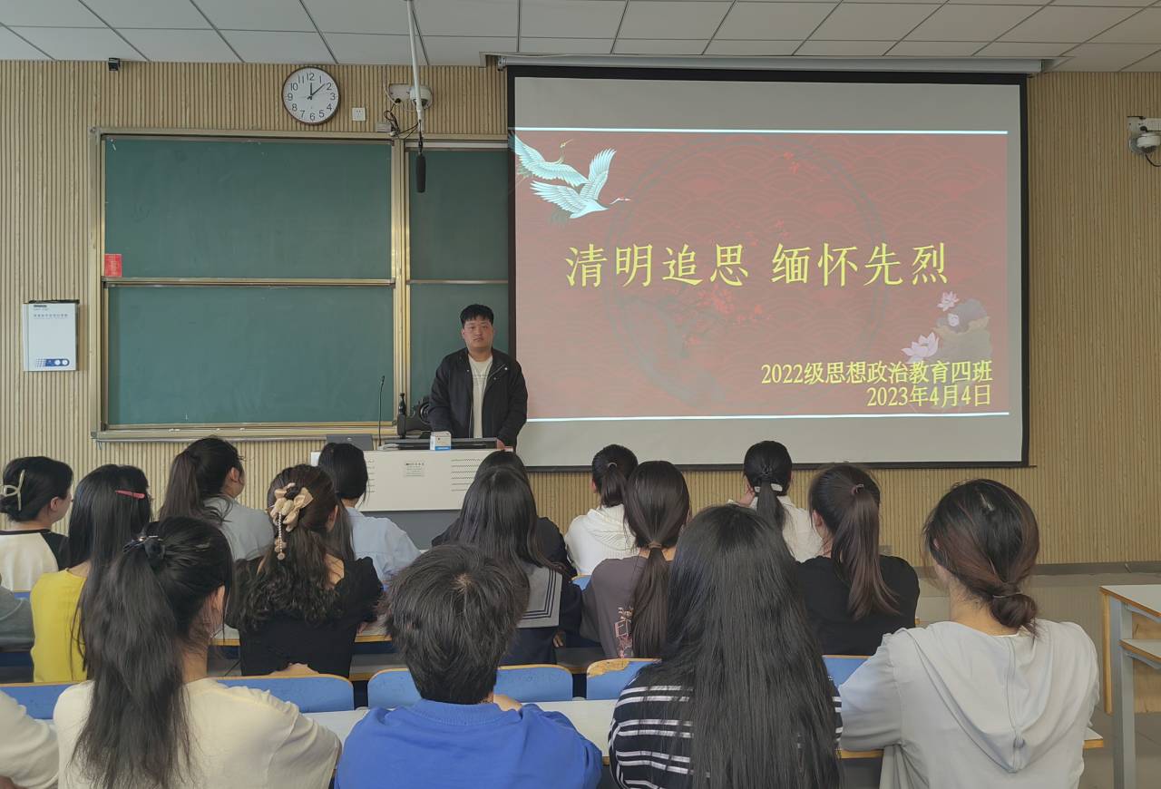 为发扬中华民族优秀文化,缅怀先烈英雄,4月4日下午,德赢AC米兰官网2022级思想政治教育四班在社科楼515教室召开“清明追思,缅怀先辈”主题班会,德赢官网2022级思想政治教育四班全体同学参与会议。会议由副班长宋奕铭主持。