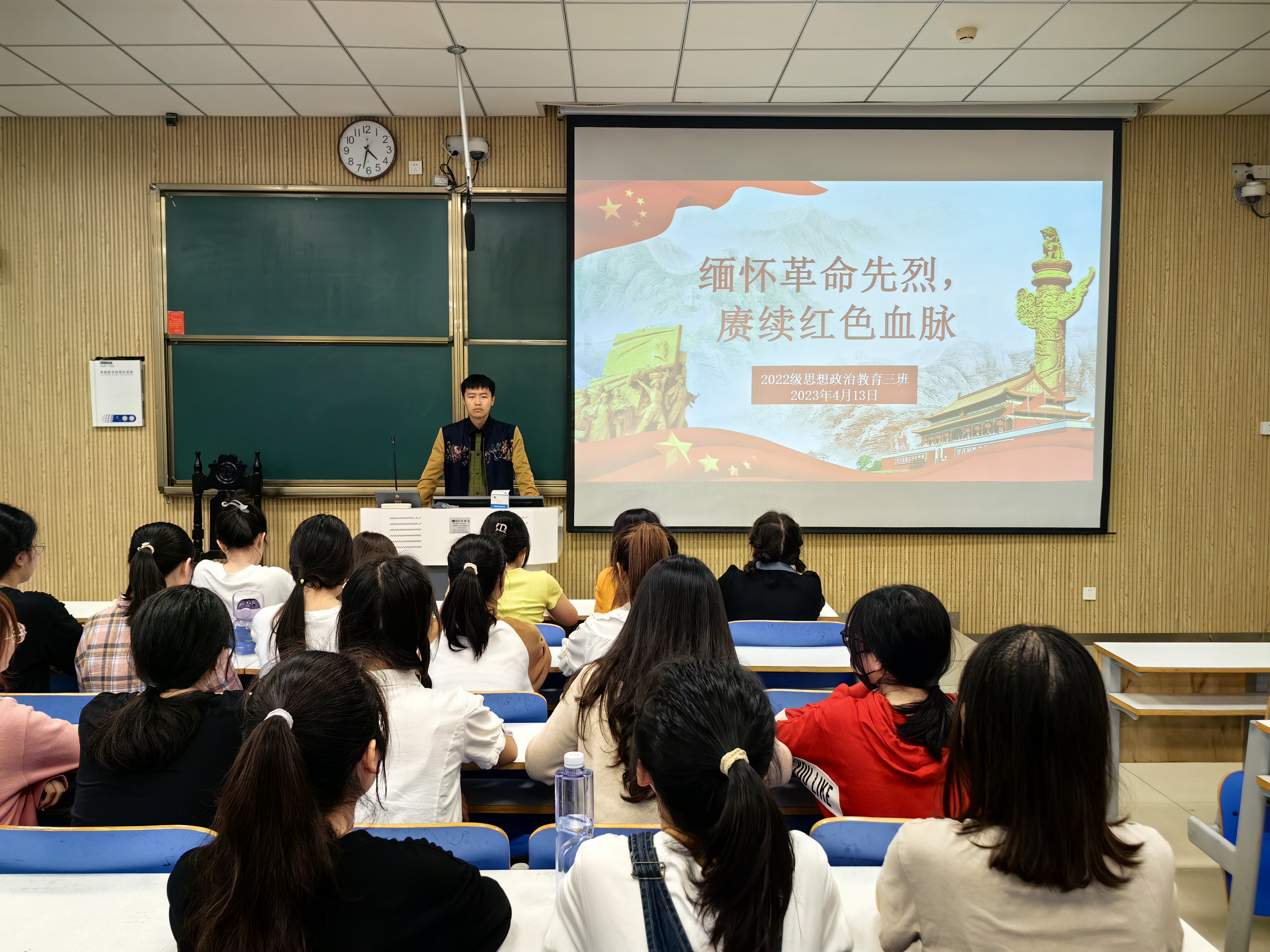 为传承红色基因,弘扬革命精神,4月13日下午,德赢AC米兰官网2022级思想政治教育三班在社科楼515教室召开“缅怀革命先烈,赓续红色血脉”主题团课。德赢官网2022级思想政治教育三班全体成员共同参与此次主题团课。团课由团支书余浩洋主持。