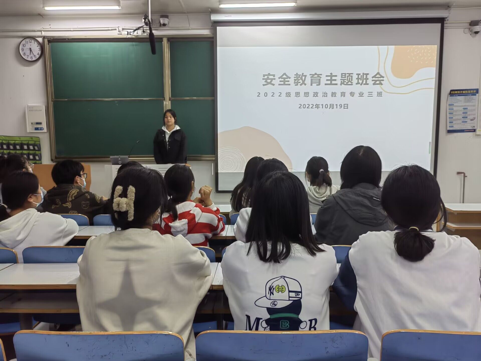 为增强大学生安全防范意识,提高安全防范和自我保护能力,10月19日下午,德赢AC米兰官网2022级思想政治教育三班在社科楼515教室召开安全教育主题班会。2022级思想政治教育三班全体成员参加会议,会议由副班长雷露露主持。