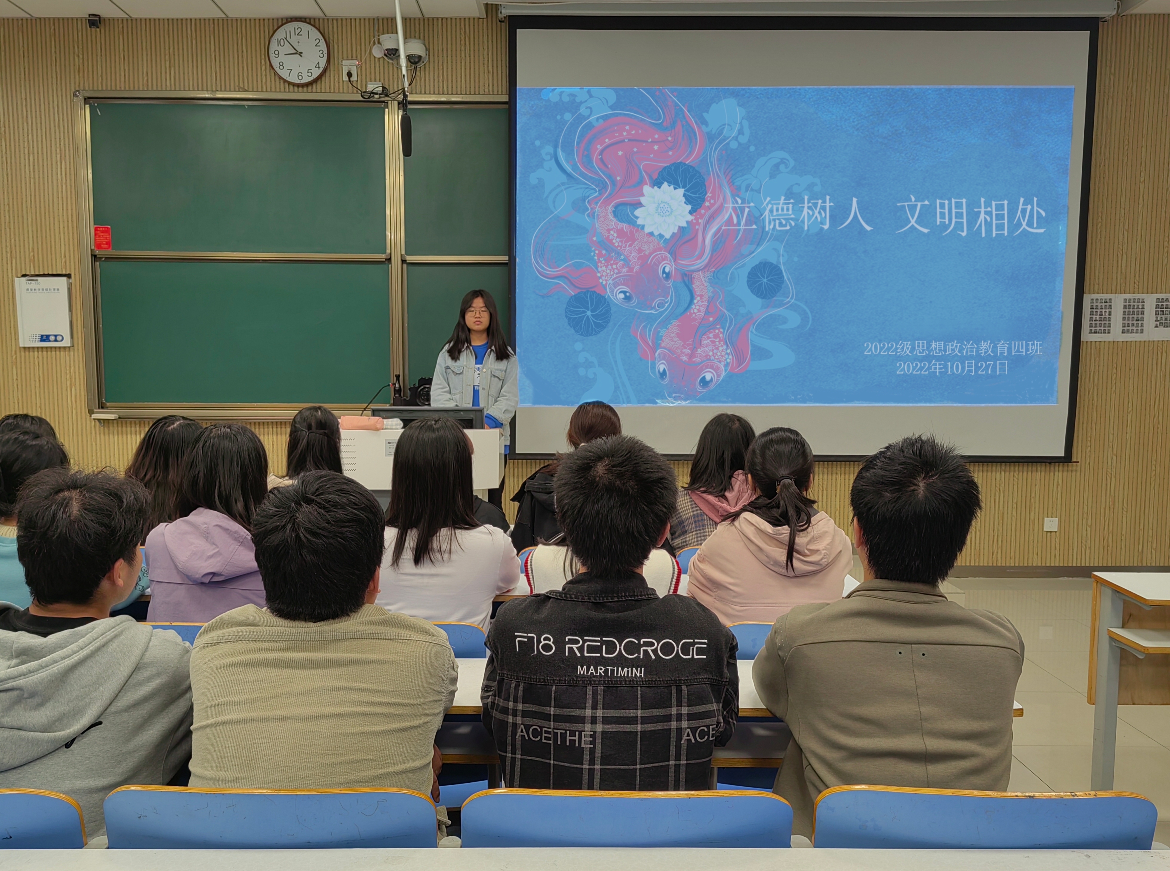 为营造文明校园氛围,提高同学们文明素养,10月27日下午,德赢AC米兰官网2022级思想政治教育四班在社科楼515教室召开“立德树人,文明相处”主题班会。会议由学习委员熊祎主持。