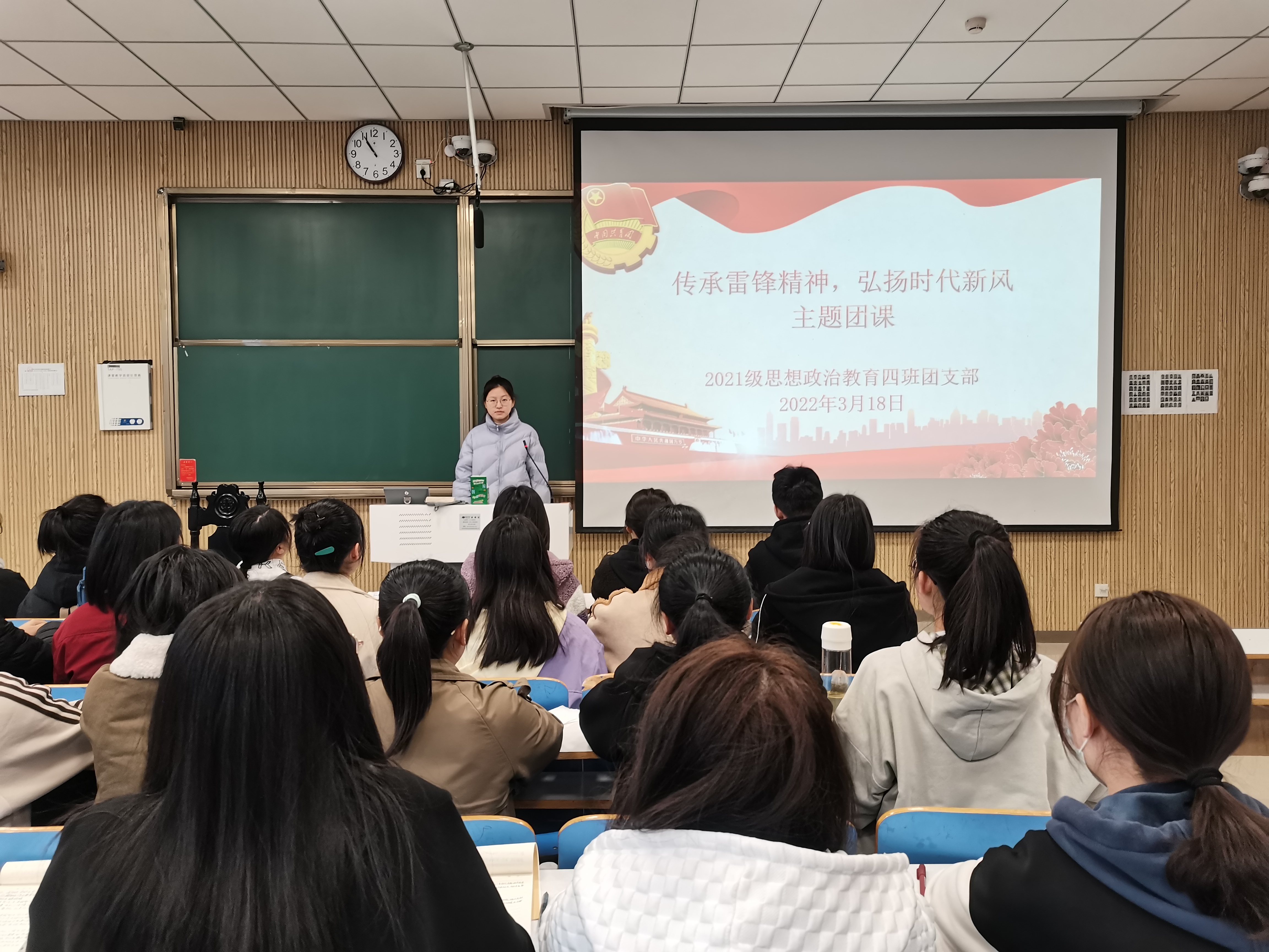 3月18日上午,德赢AC米兰官网2021级思想政治教育四班在社科楼515教室开展“传承雷锋精神,弘扬时代新风”主题团课。2021级思想政治教育四班全体团员共同参与本次团课。团课由团支书刘珂含主持。