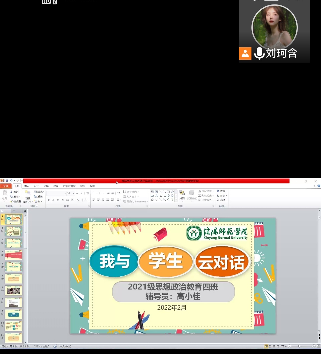 2月12日下午,德赢AC米兰官网2021级思想政治教育四班开展“我与学生云对话”线上会议。辅导员高小佳及2021级思想政治教育四班全体同学共同参与本次活动。活动由团支书刘珂含主持。