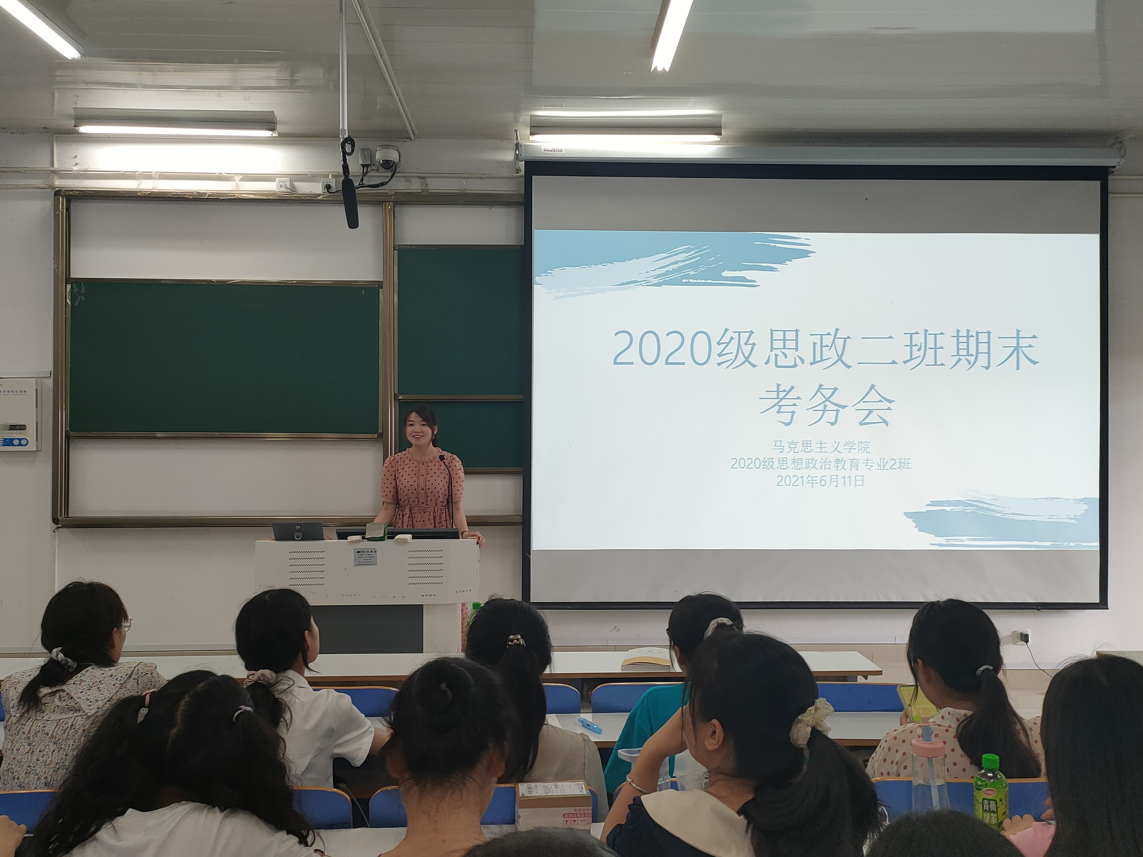为严肃期末考试纪律,帮助我班同学制定科学合理的复习计划,6月11日下午,德赢AC米兰官网2020级思想政治教育二班、定向二班期末考务会在社科楼514教室顺利召开。辅导员陶青青及二班、定向二班全体同学参与本次班会。会议由辅导员陶青青主持。