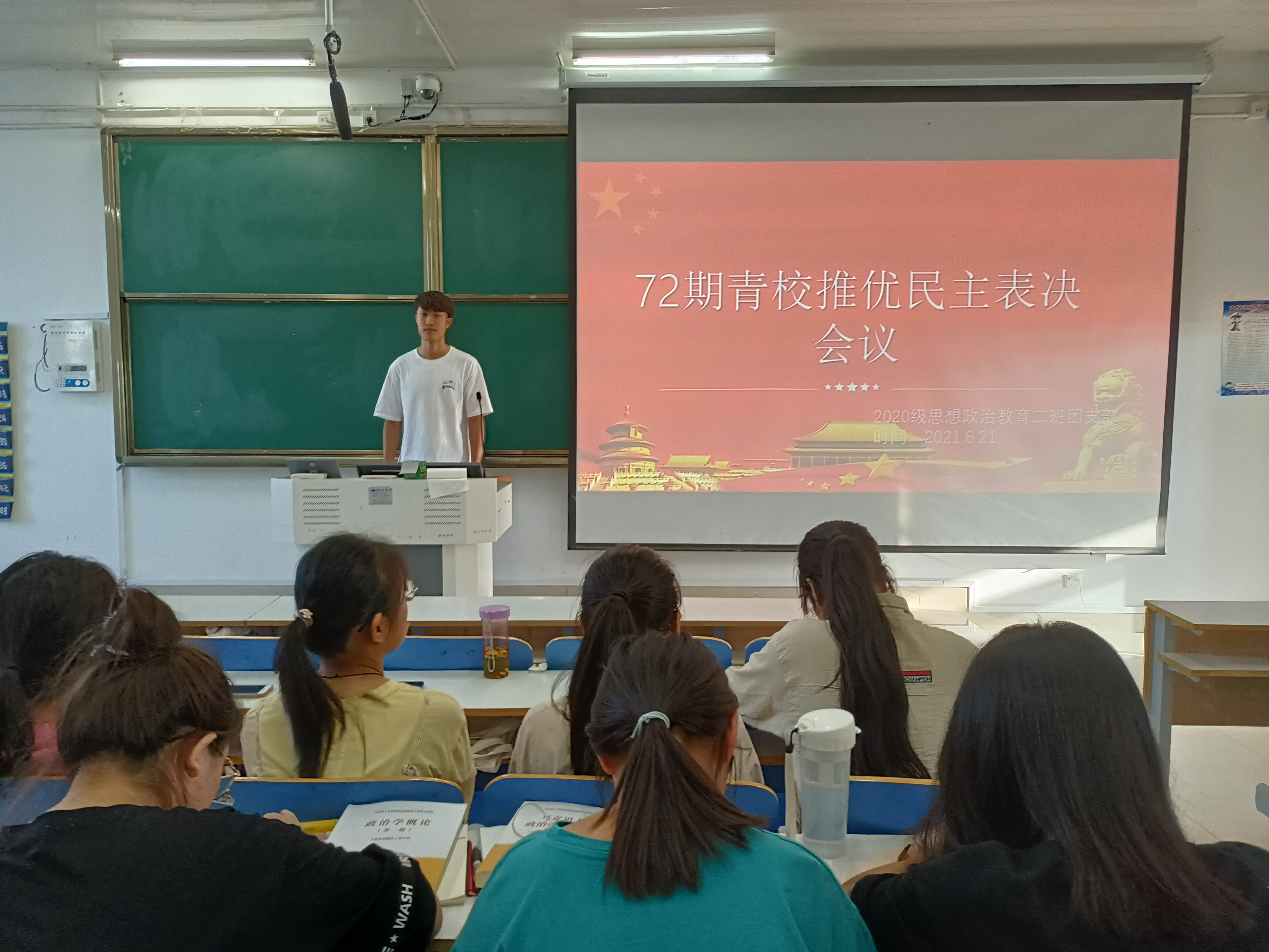 6月21日下午,德赢AC米兰官网2020级思想政治教育二班在社科楼514教室顺利召开第72期青校学员推优民主表决团支部大会。2020级思想政治教育二班全体团员共同参与本次会议。