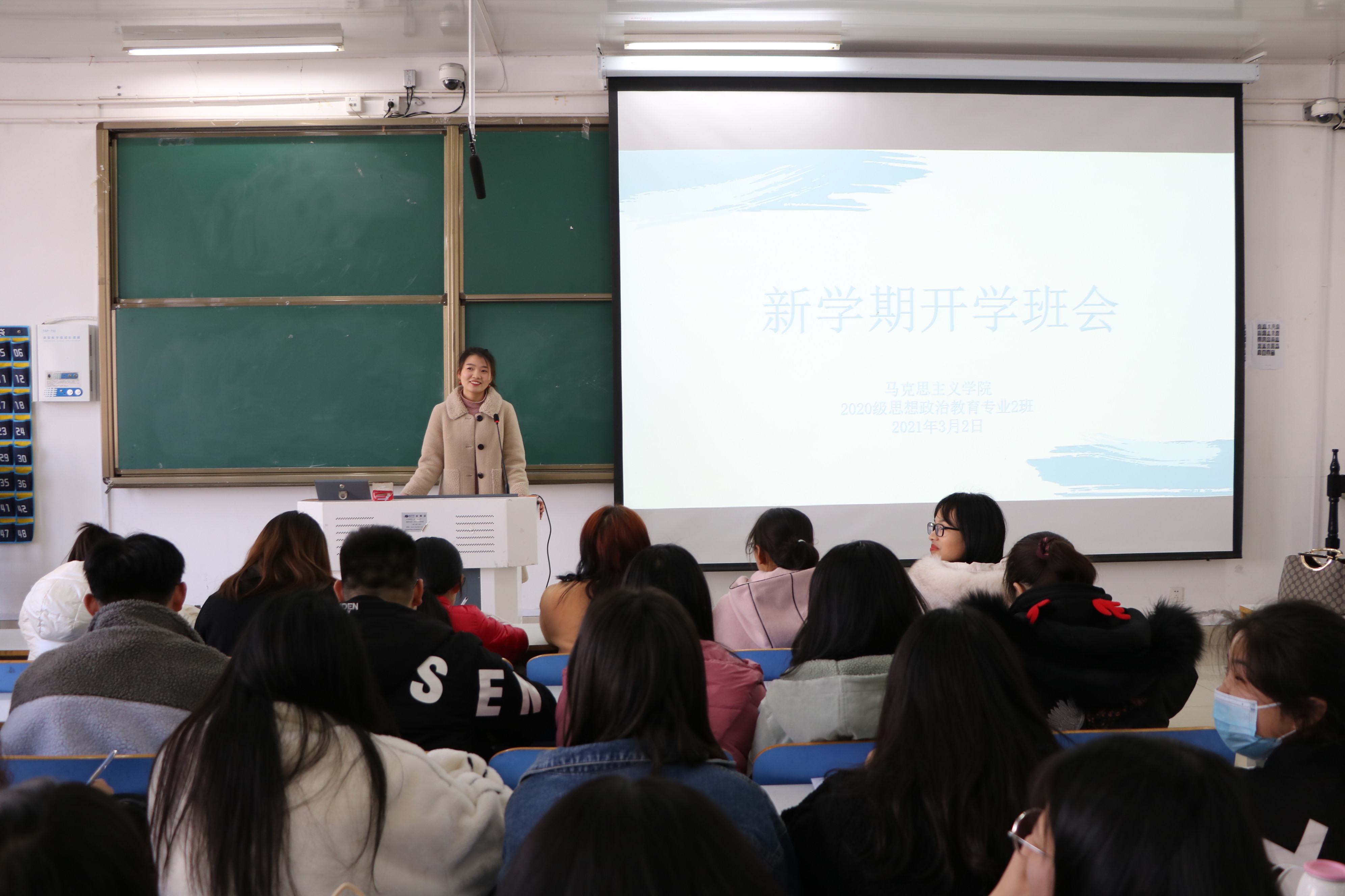 3月2日,德赢AC米兰官网2020级思想政治教育二班、定向二班新学期开学班会在社科楼516教室顺利召开。班主任陶青青、二班全体学生及本学期转入我班的8名新同学共同参与本次班会。会议由陶青青主持。