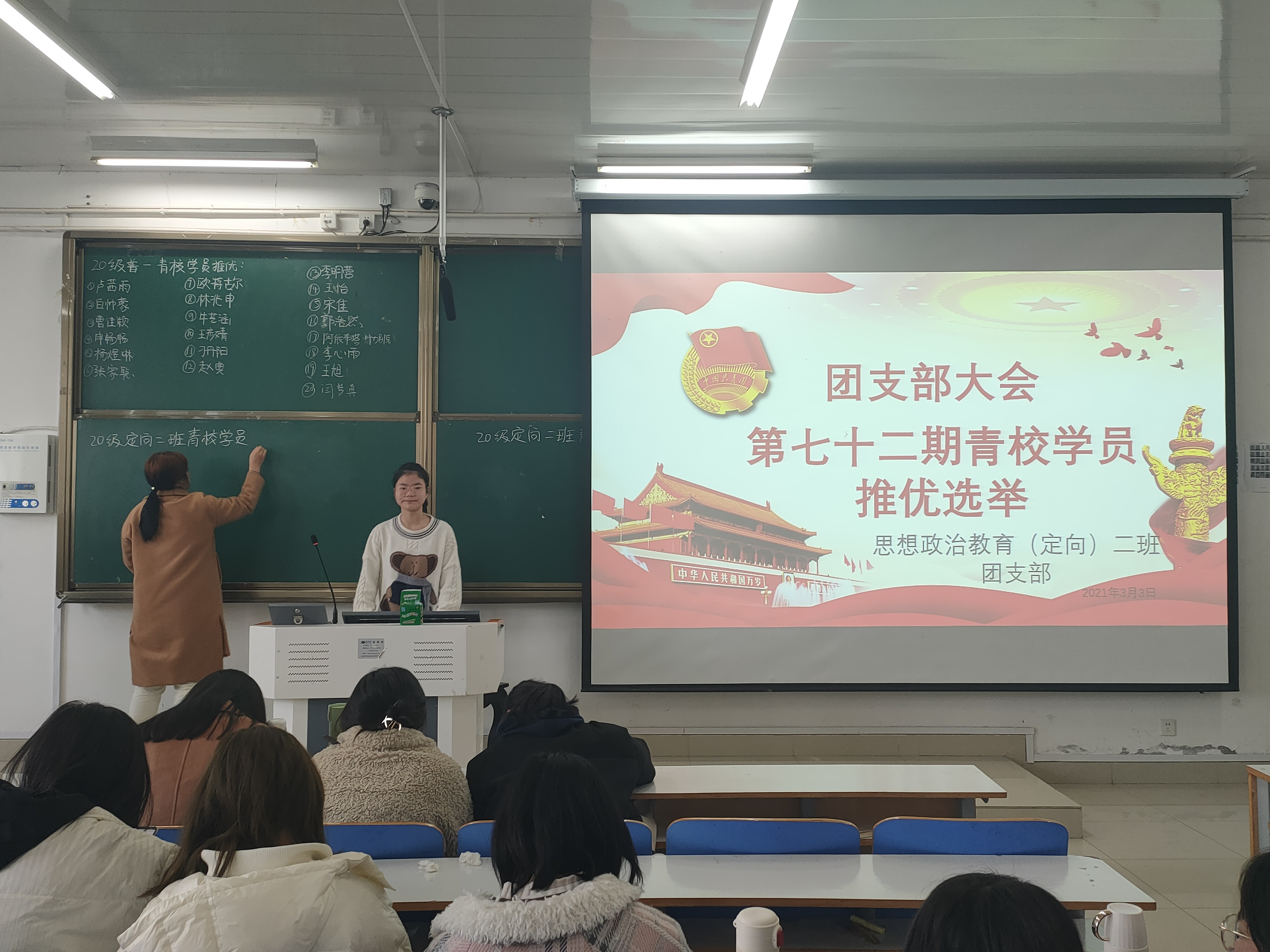 3月3日下午,德赢AC米兰官网2020级思想政治教育定向二班第72期青校学员推优选举团支部大会在社科楼516教室顺利召开。