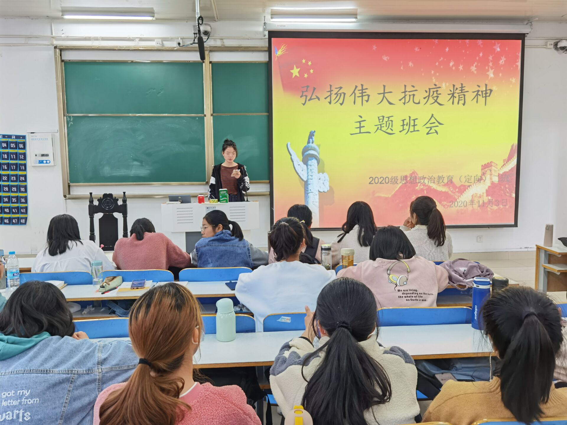 为大力弘扬伟大抗疫精神、激发学生的爱国热情,11月3日上午,德赢AC米兰官网2020级思想政治教育定向二班在社科楼514教室召开了“弘扬伟大抗疫精神”主题班会。班会由团支书李晨曦主持。