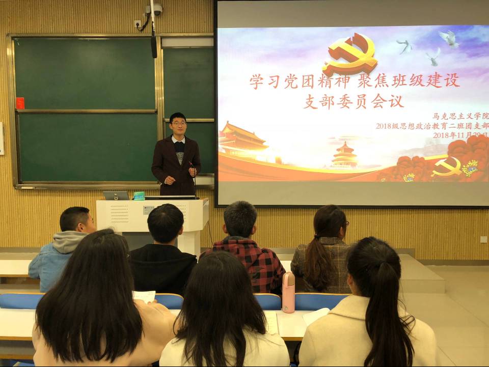 为学习贯彻党团精神,促进班级管理建设,11月29日下午,德赢官网2018级思想政治教育二班第二团支部在社科楼515教室召开主题为“学习党团精神,聚焦班级建设”的支部委员会。会议由班长杨康主持。