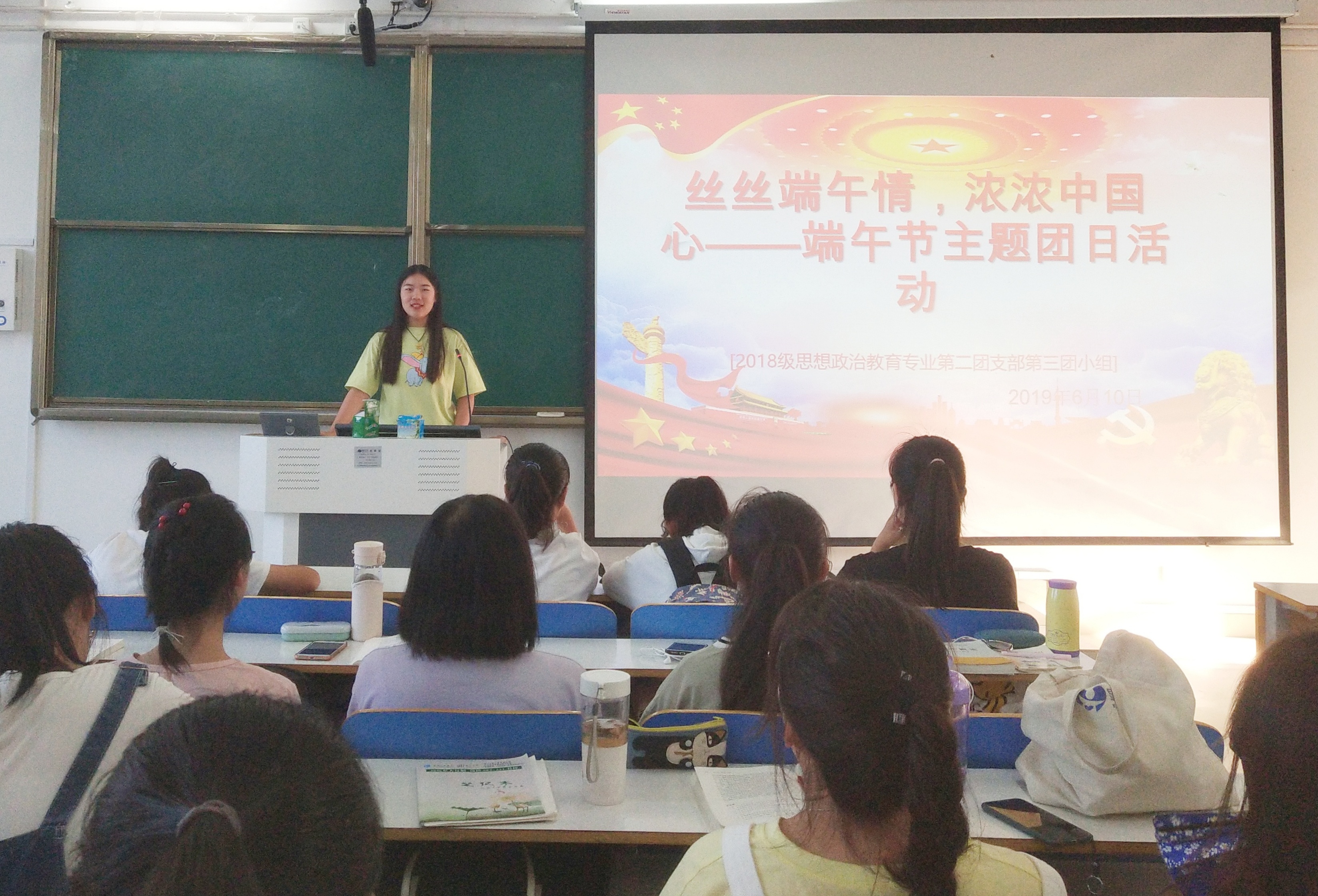 首先,王璐以端午节相关图片引出本次会议的主题。她提到,端午节寄托了人们对屈原的缅怀,传承爱国的优良传统,振奋中国精神。接着,王璐引用习近平总书记在纪念五四运动一百周年大会上的重要讲话“对每一个中国人来说,爱国是本分,也是职责,是心之所向、情之所归”说明了爱国情怀的重要性。同时,她强调,作为当代青年大学生,我们要具有精忠报国的爱国精神和鞠躬尽瘁的奉献精神,把爱国精神变成报国行动,以奉献精神创造辉煌。活动过程中,团小组成员对端午节、爱国主义精神展开讨论。周玉娟指出,通过屈原强烈的爱国主义精神的熏陶,她感受到“天下兴亡,匹夫有责”的深义,产生了“只要国家需要我,我必全力以赴”的决心。最后,王璐对本次会议做出总结。她讲到,本次会议以节载道,传承先进民族文化,培育民族精神,推动“中华龙舟号”巨轮破浪前行。