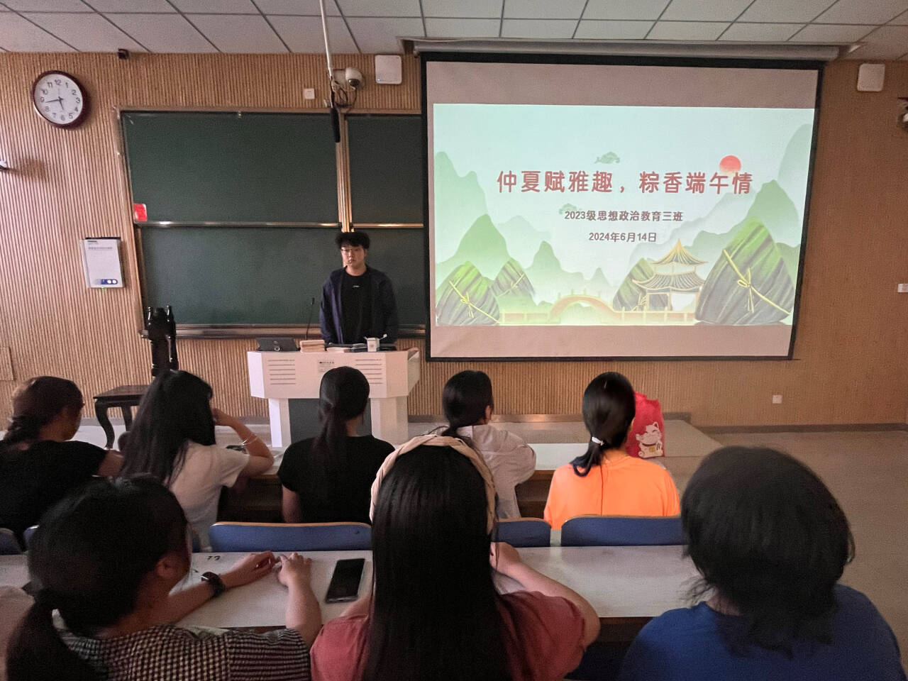 为深入了解端午节的文化背景,6月14日上午,德赢AC米兰官网2023级思想政治教育三班在社科楼515召开“仲夏赋雅趣,粽香端午情”主题班会。德赢官网2023级思想政治教育三班全体同学共同参与本次班会,班会由团支书郝瀚主持。