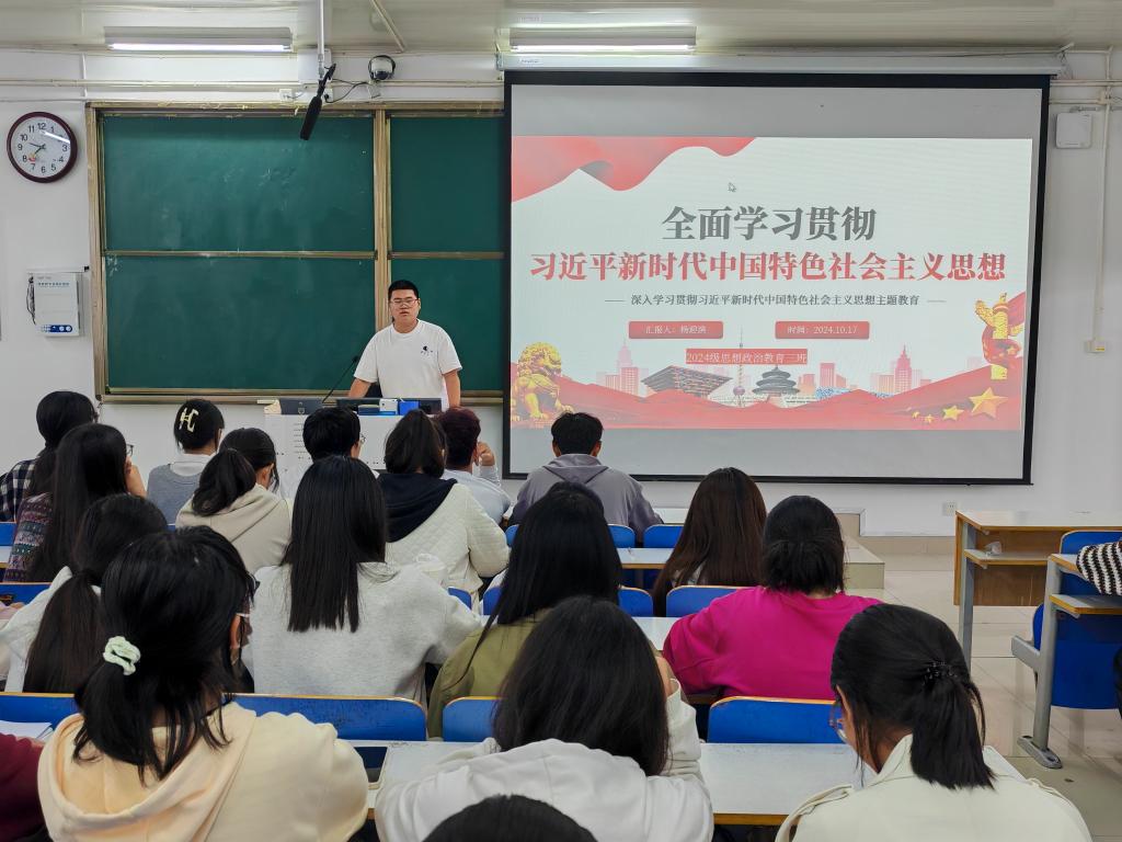 为了深入学习领会习近平新时代中国特色社会主义思想,不断增进青年学生对党创新理论的政治认同,德赢AC米兰官网2024级思想政治教育三班于10月17日下午在社科楼515教室举办“深入学习贯彻习近平新时代中国特色社会主义思想”主题团课活动。本次团课活动由团支书杨迎滨主持。