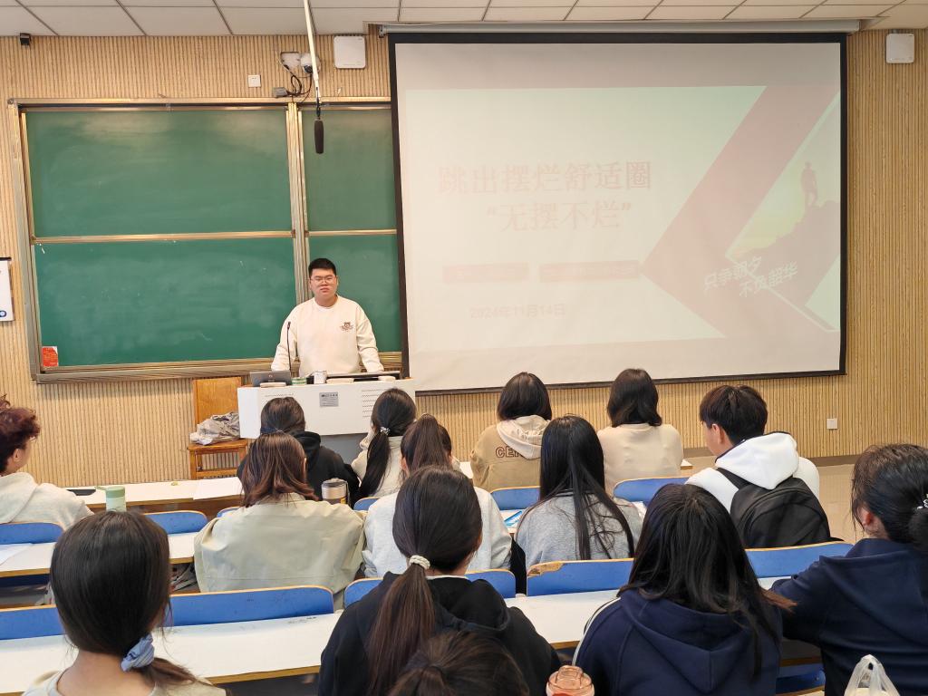 为了激励同学们摒弃消极心态,积极面对学习和生活中的挑战,努力跳出舒适圈,德赢AC米兰官网2024级思想政治教育三班于11月14日在社科楼515教室成功举办了一场以“跳出摆烂舒适圈”为主题的班会。此次班会由班长杨迎滨主持。