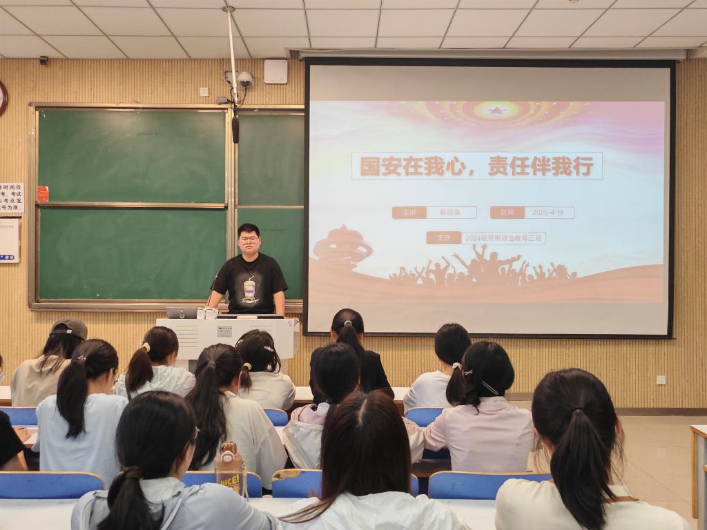 为深入贯彻落实总体国家安全观,增强青年学生维护国家安全的责任意识,德赢AC米兰官网2024级思想政治教育三班于4月16日在社科楼515组织开展了“国安在我心,责任伴我行”主题团课活动。本次活动由团支书杨迎滨主持,现场气氛热烈,反响良好。