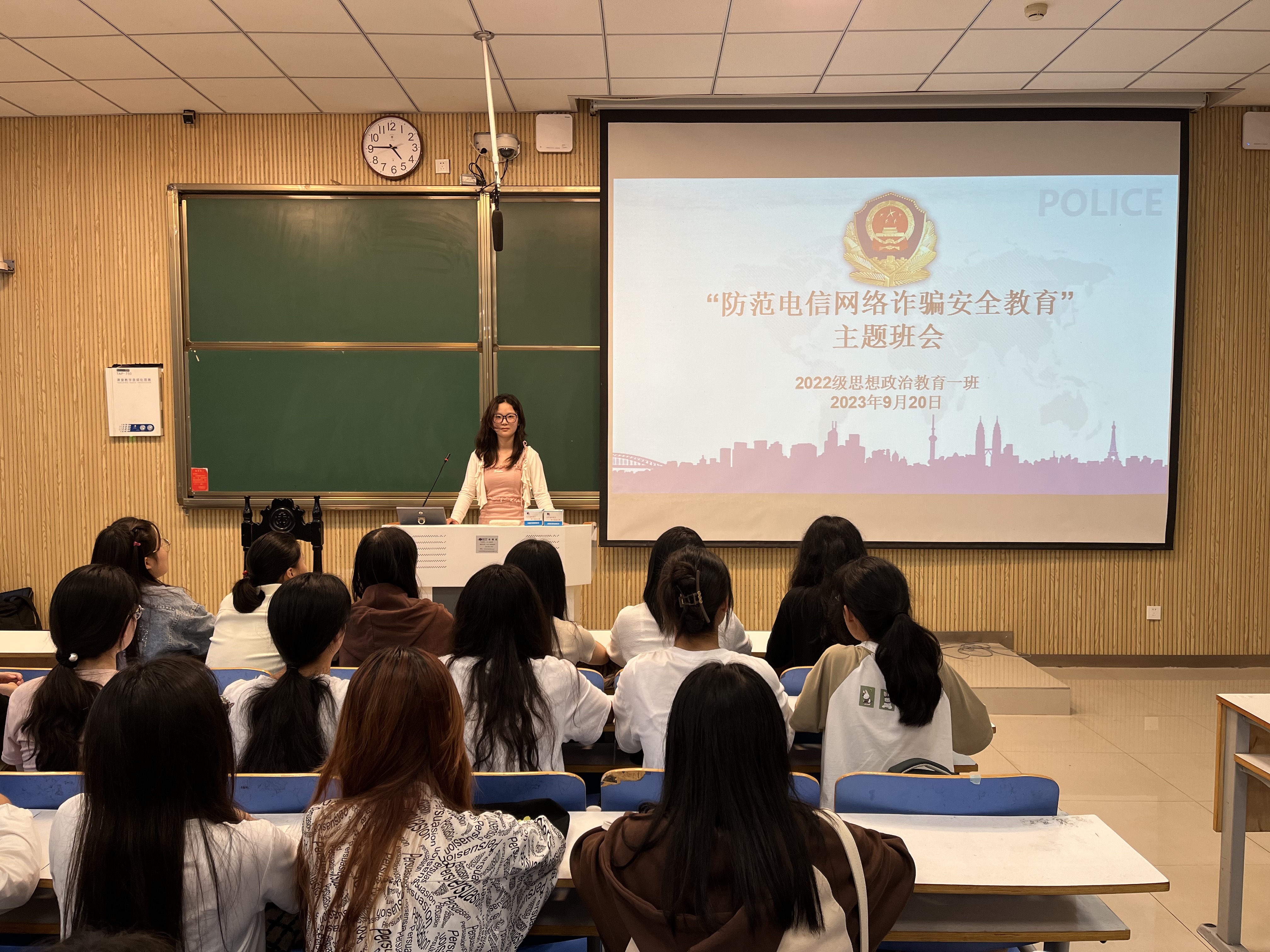 为提升同学们的安全防范意识,9月20日下午,德赢AC米兰官网2022级思想政治教育一班在社科楼515教室召开“防范电信网络诈骗安全教育”主题班会。德赢官网2022级思想政治教育一班全体同学共同参与本次班会,班会由班长李佳茹主持。