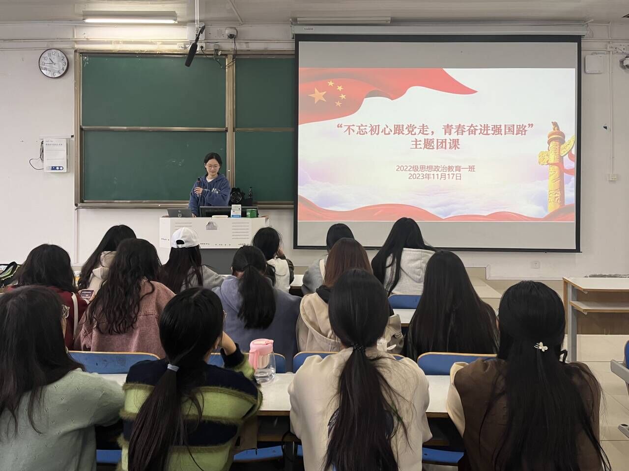 为激励广大青年的奋进力量,11月17日上午,德赢AC米兰官网2022级思想政治教育一班在社科楼514教室召开“不忘初心跟党走,青春奋进强国路”主题团课。德赢官网2022级思想政治教育一班全体同学共同参与本次团课,团课由团支书李佳茹主持