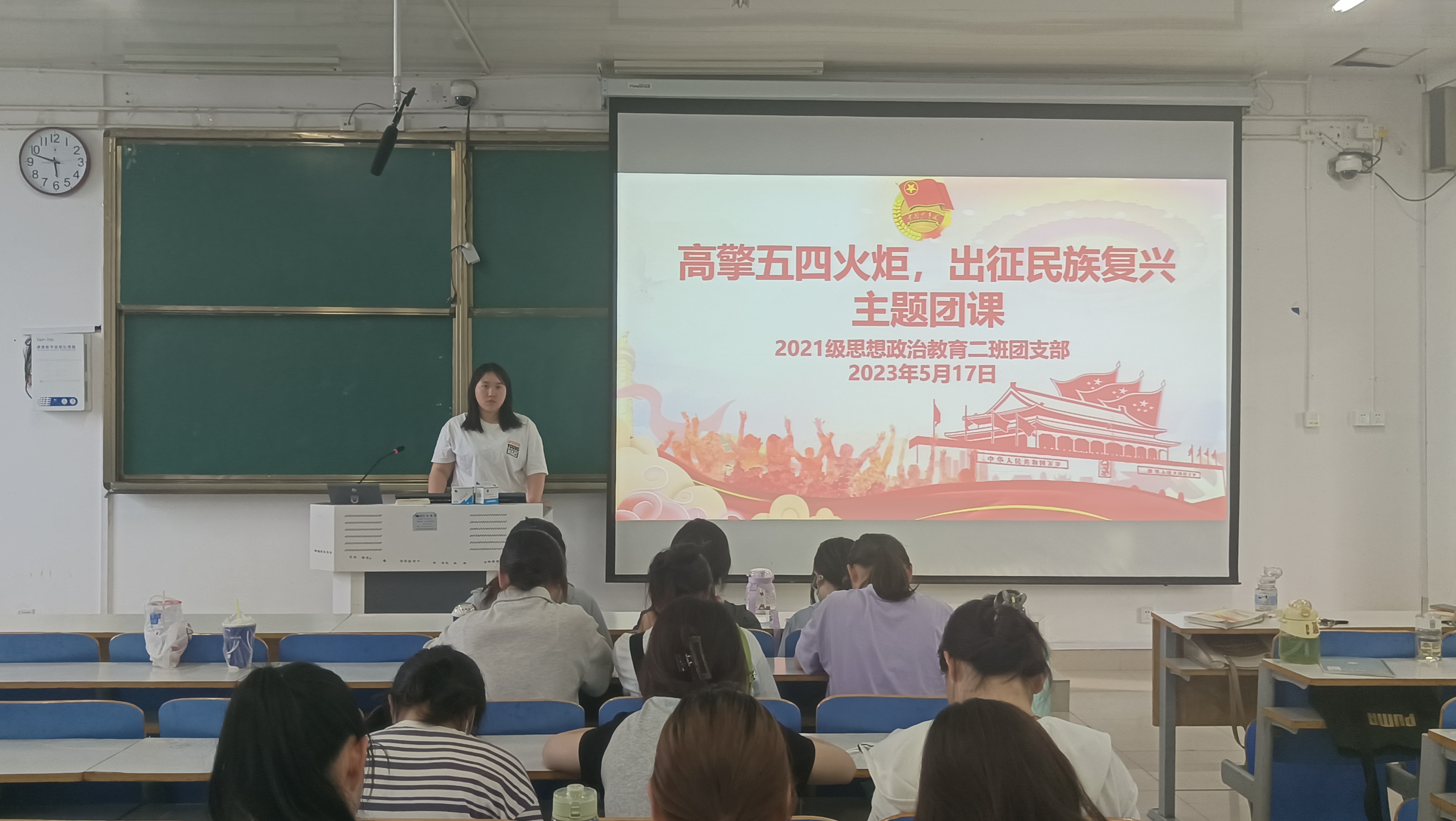 5月17日下午,德赢AC米兰官网2021级思想政治教育二班在社科楼514教室召开“高擎五四火炬,出征民族复兴”主题团课。2021级思想政治教育二班全体团员参加此次团课。团课由团支书王婧欣主持。
