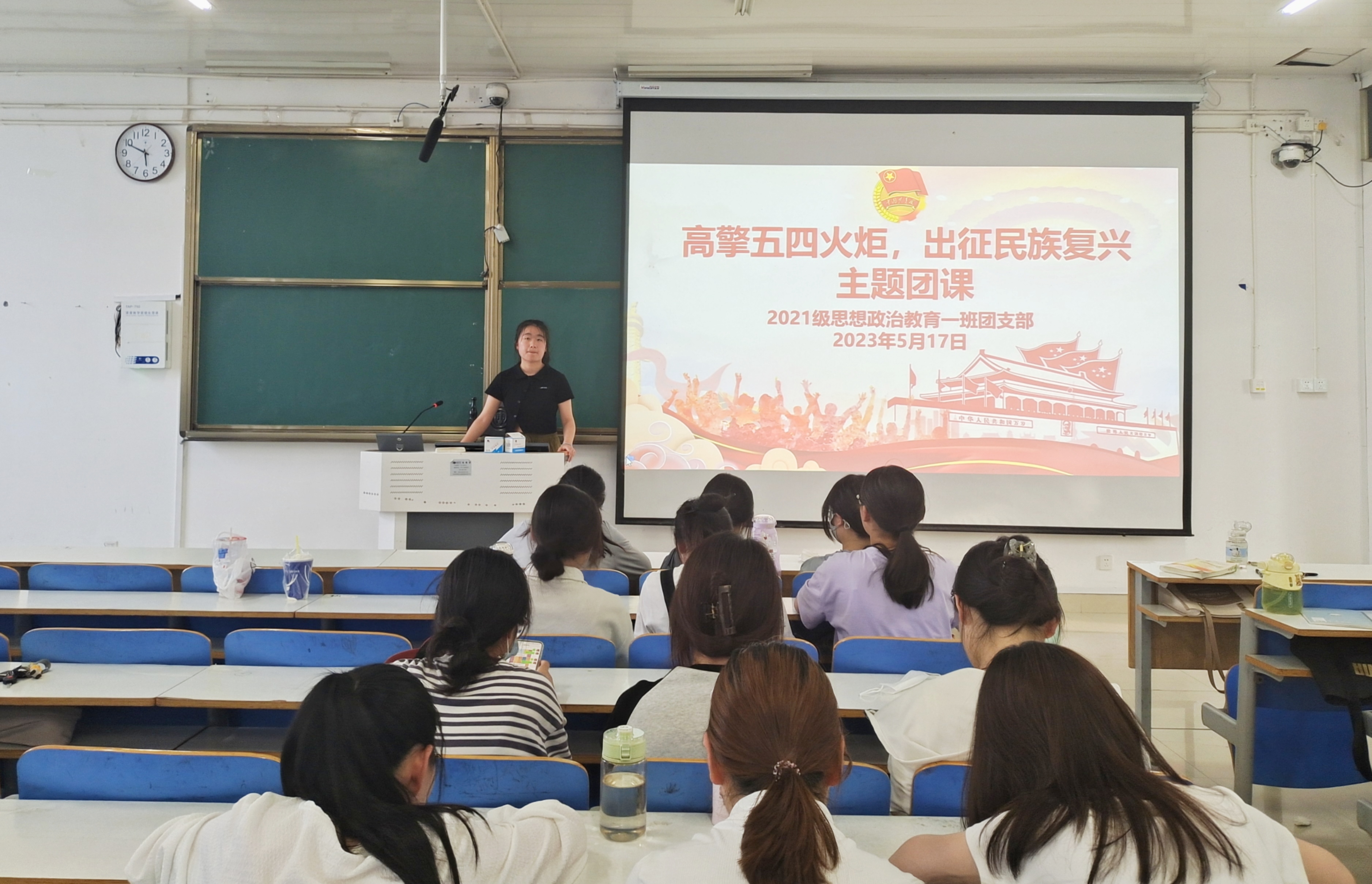 5月17日下午,德赢AC米兰官网2021级思想政治教育一班在社科楼514教室召开“高擎五四火炬,出征民族复兴”主题团课。2021级思想政治教育一班全体团员共同参加了本次团课。团课由副班长雷敏主持。