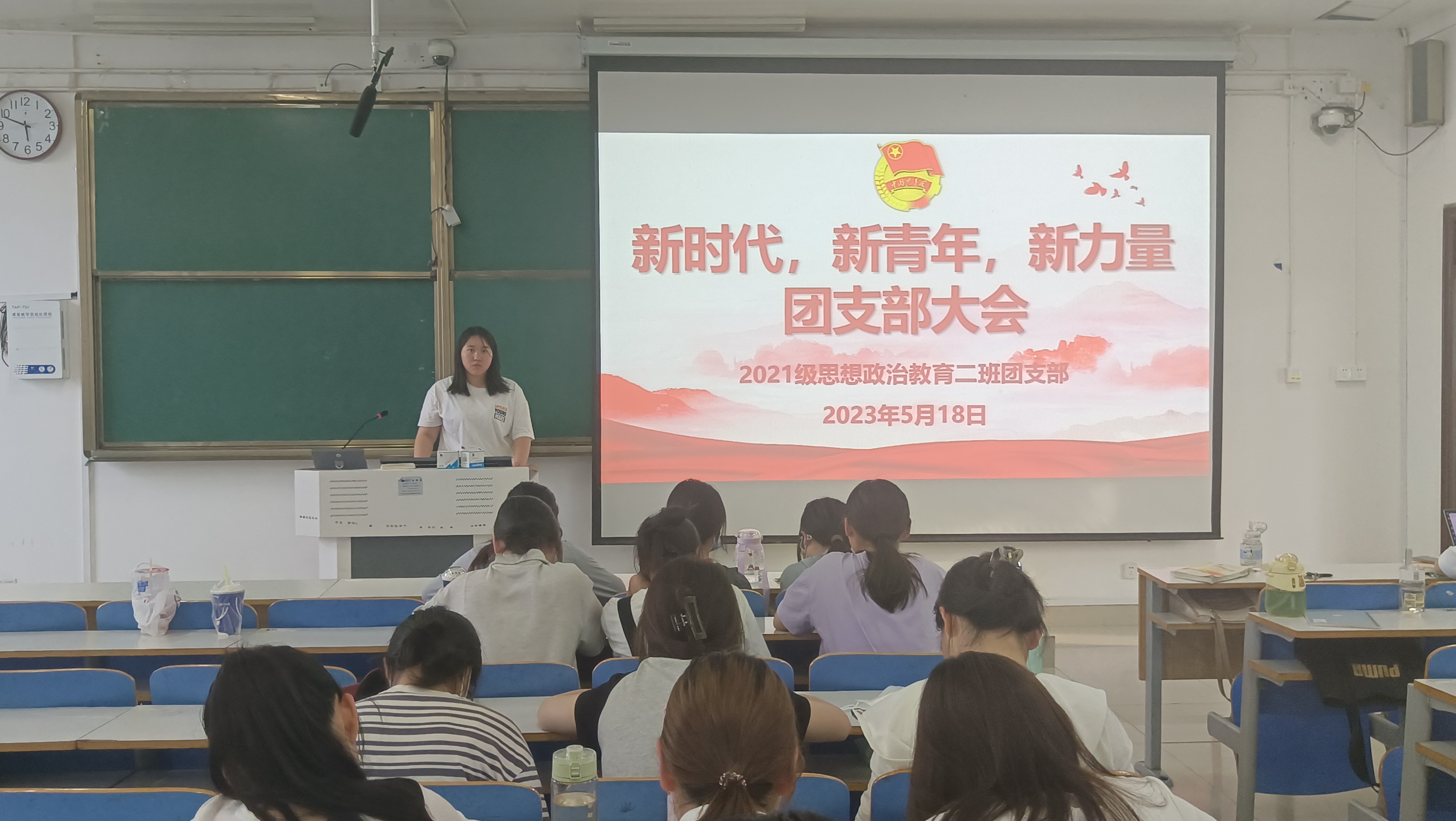 5月18日下午,德赢AC米兰官网2021级思想政治教育二班在社科楼514教室召开“新时代,新青年,新力量”团支部大会。2021级思想政治教育二班全体团员参加此次团支部大会。会议由团支书王婧欣主持。