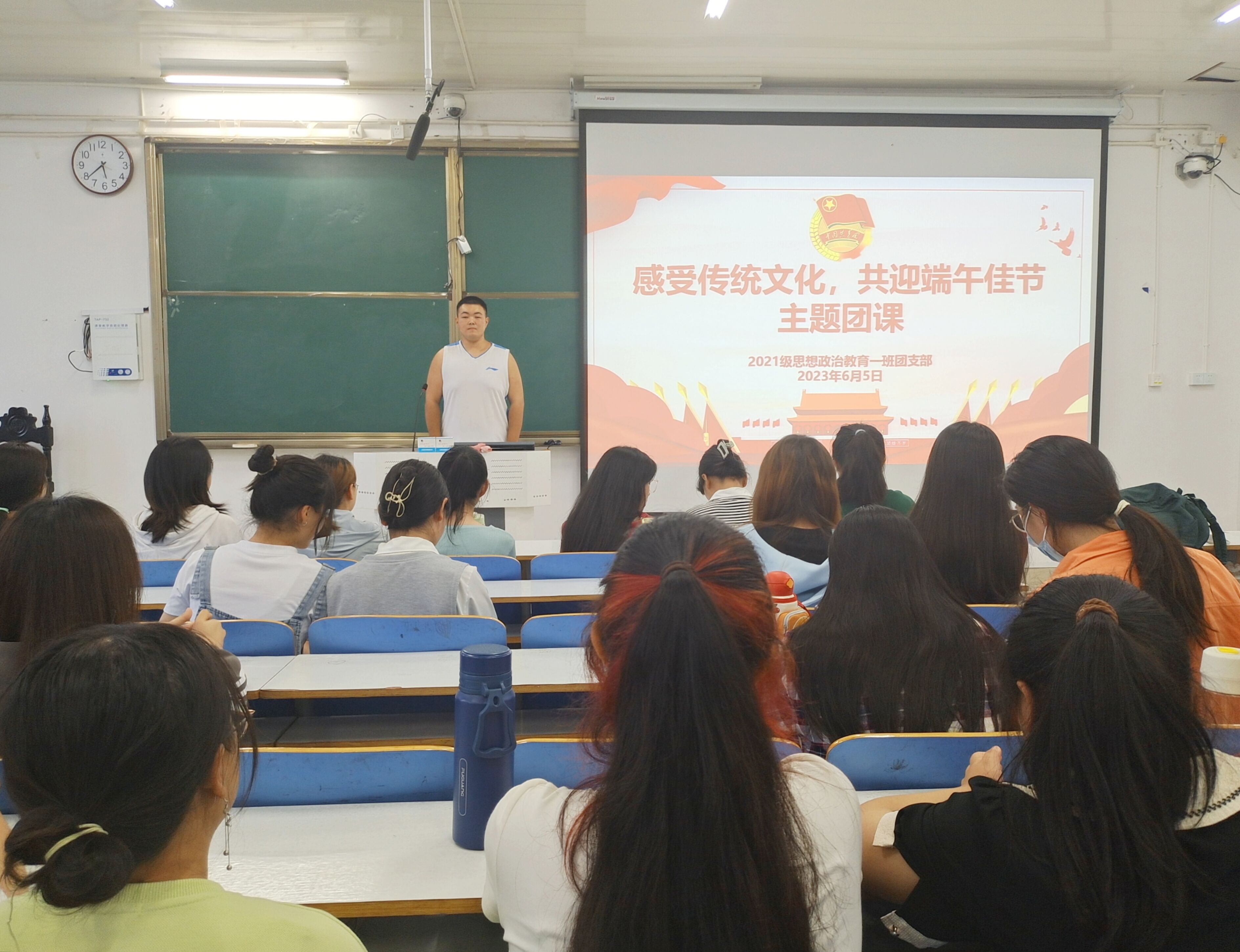 端午节来临之际,为了弘扬民族精神,传承端午节传统文化, 6月5日下午,德赢AC米兰官网2021级思想政治教育一班在社科楼514教室召开“感受传统文化,共迎端午佳节”主题团课。2021级思想政治教育一班全体团员共同参加了本次团课。团课由团支书戴翰林主持。