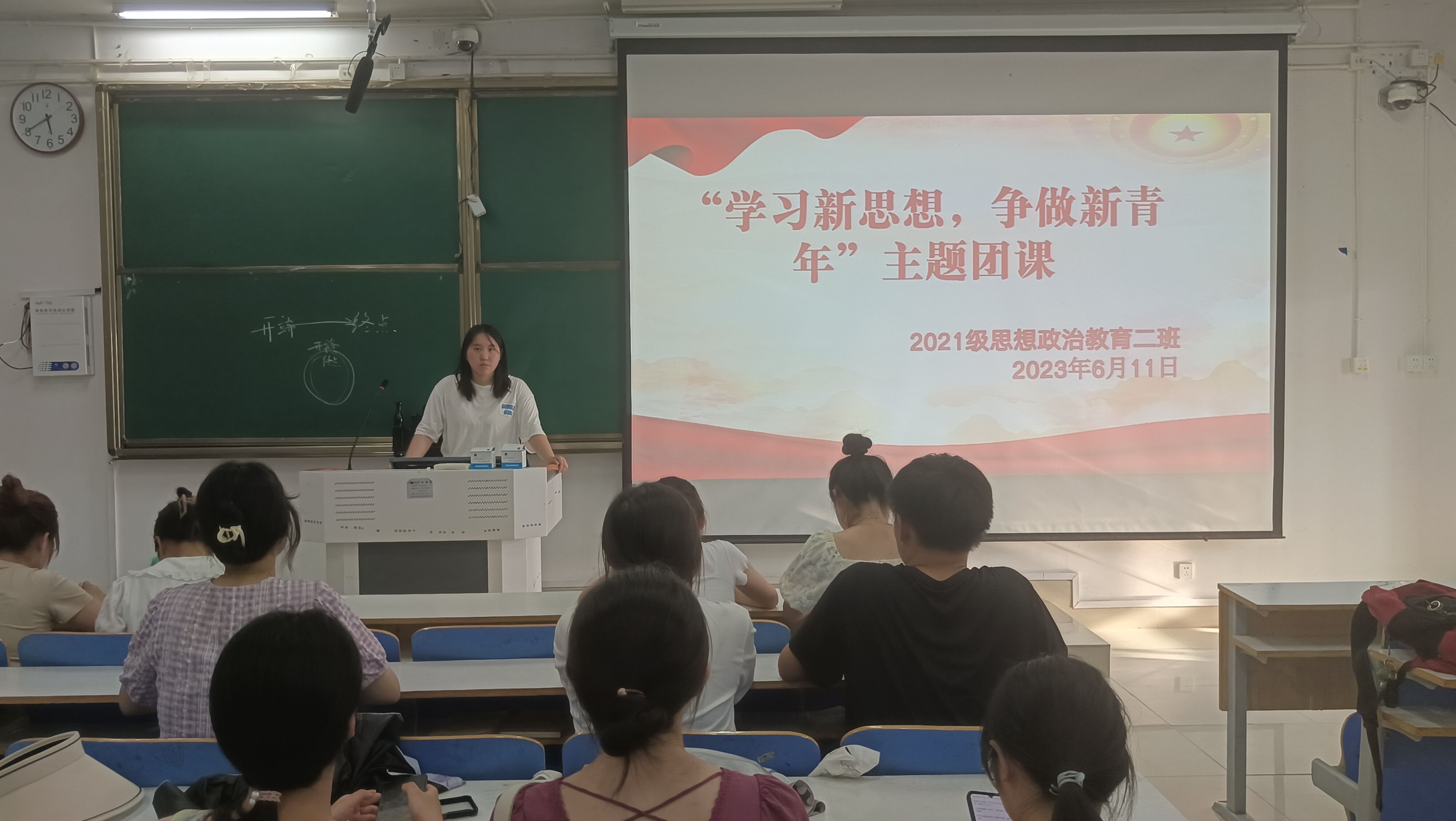 6月11日上午,德赢AC米兰官网2021级思想政治教育二班在社科楼514教室召开“学习新思想,争做新青年”主题团课。2021级思想政治教育二班全体团员参加此次团课。团课由团支书王婧欣主持。