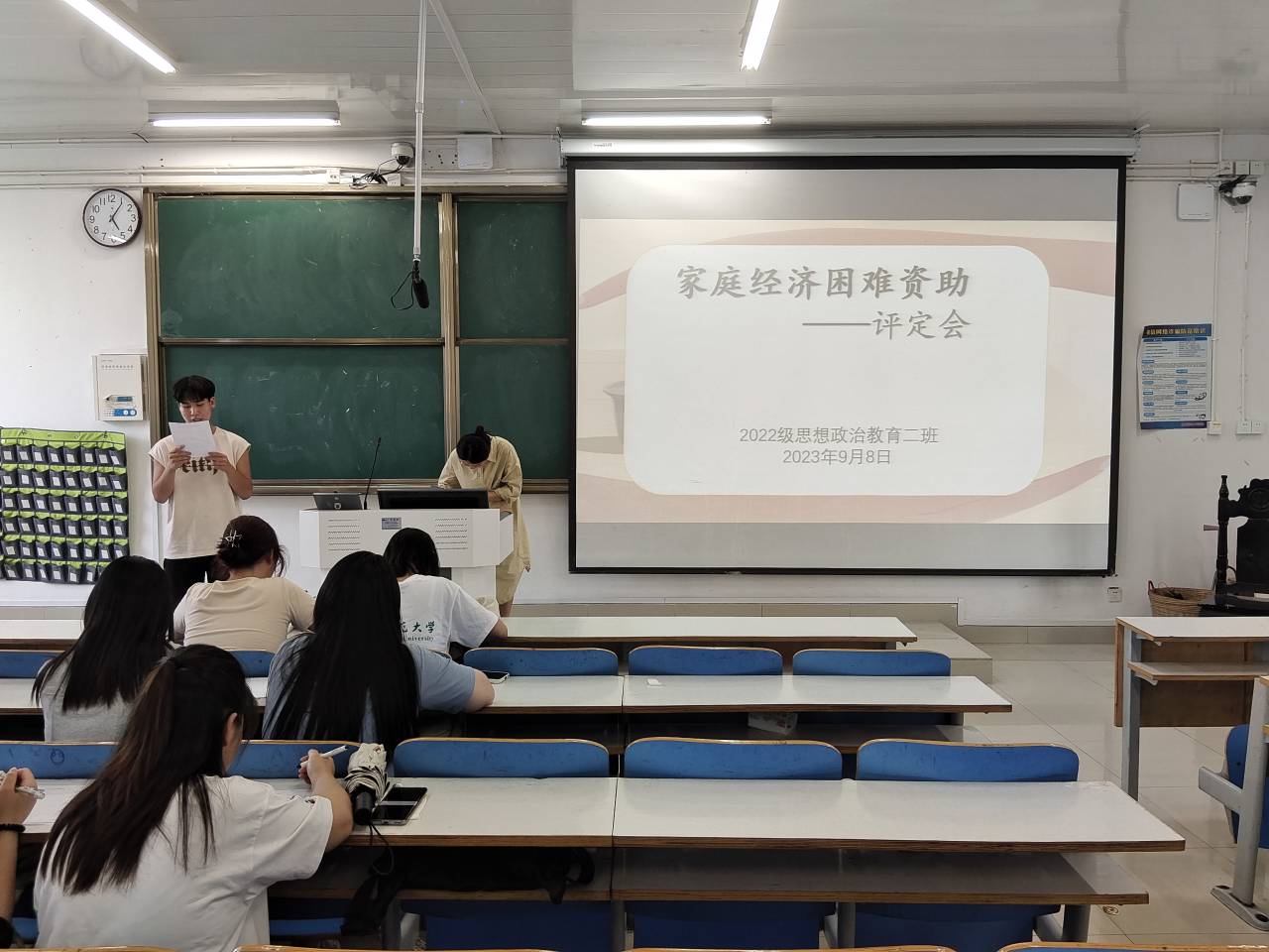 9月8日下午,德赢AC米兰官网2022级思想政治教育二班在社科楼514教室召开“家庭经济困难资助评定会”。德赢官网2022级思想政治教育二班杨春艳老师和全体同学参与本次评议会。副班长柴智森主持本次会议。