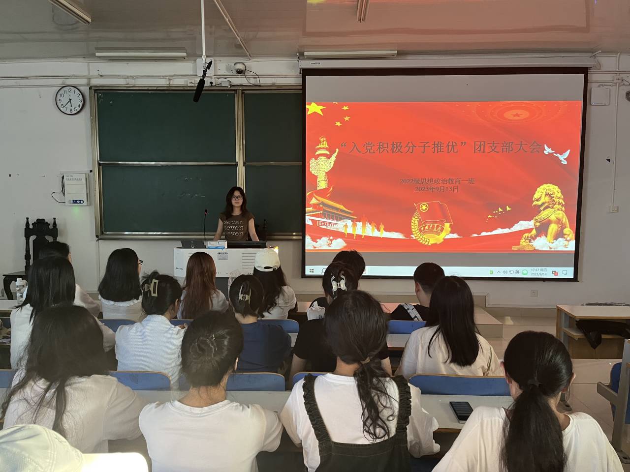 为加强党的队伍建设,切实做好入党推优工作,9月13日下午,德赢AC米兰官网2022级思想政治教育一班在社科楼514教室召开“入党积极分子推优”团支部大会。德赢官网2022级思想政治教育一班班主任王明园和一班全体同学参与本次会议,会议由团支书李佳茹主持。